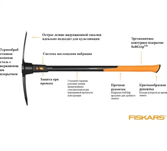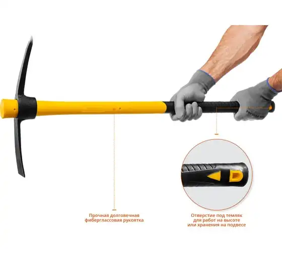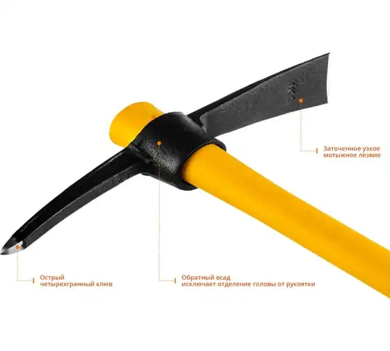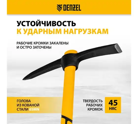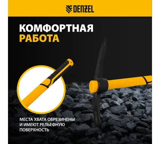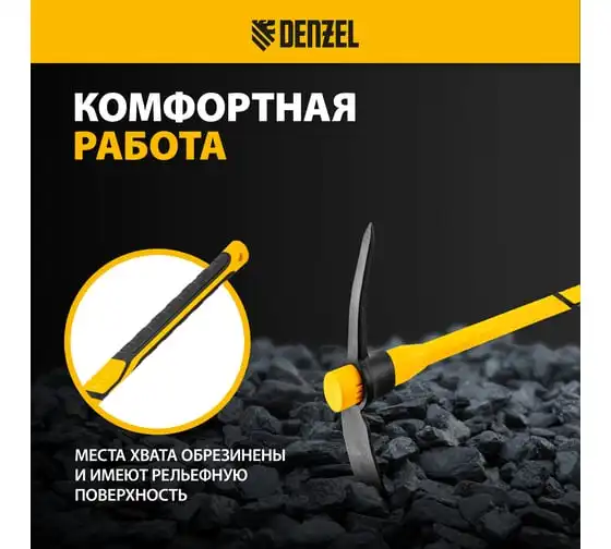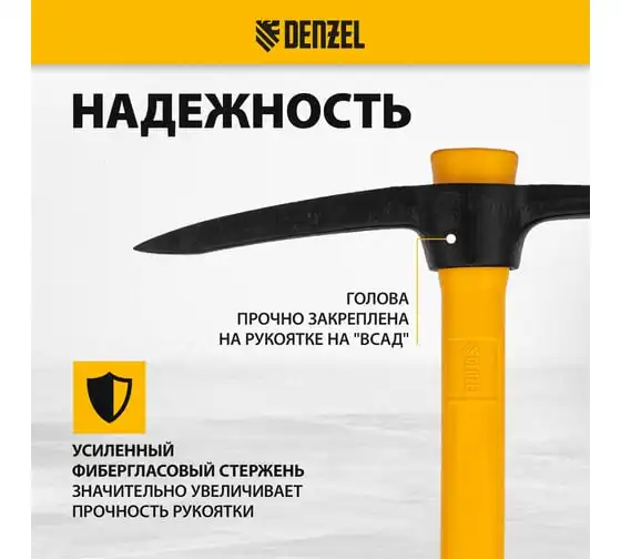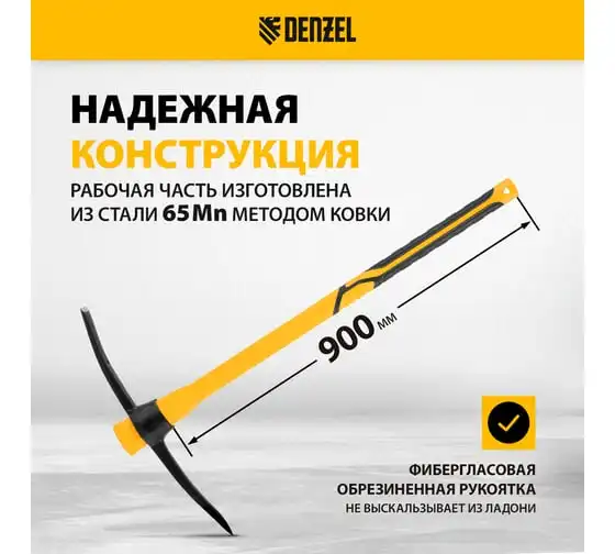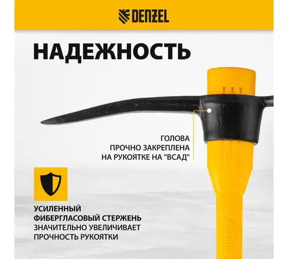 Кирка-топор Denzel 2250 г, фиберглассовая обрезиненная рукоятка, 900 мм 21837