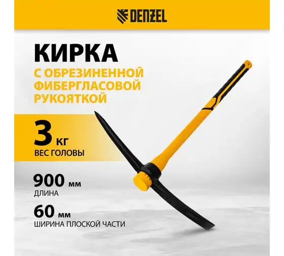 Кирка Denzel 3000 г, фиберглассовая обрезиненная рукоятка, 900 мм 21836