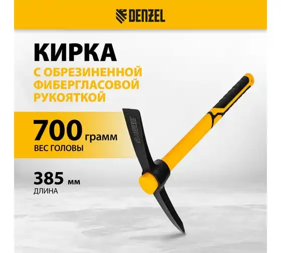 Кирка Denzel 700 г, фибергласовая обрезиненная рукоятка, 385 мм 21831