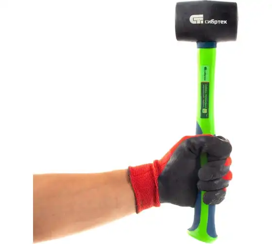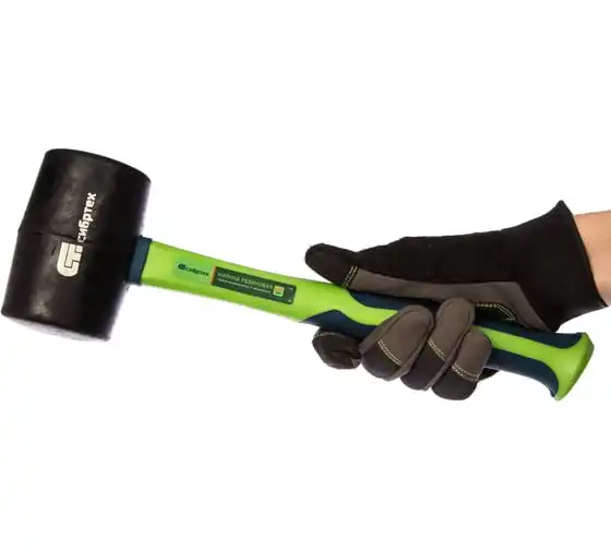 Резиновая киянка СИБРТЕХ 450г черная резина, фибергласовая рукоятка // 11164