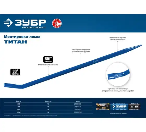 Монтажный лом Зубр ТИТАН 1500 мм 25 мм шестигранный 21805-150_z01