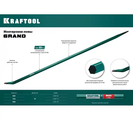 Монтировка-лом Kraftool 750 мм, 19 мм, шестигранная, 21807-75_z01