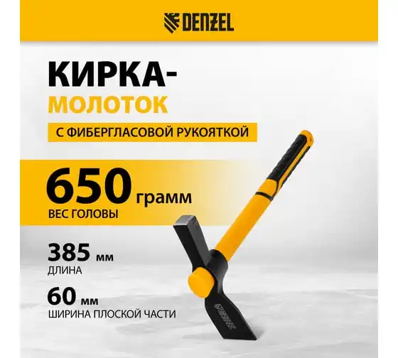 Кирка Denzel-молоток 650 г, фибергласовая обрезиненная рукоятка, 385 мм 21832