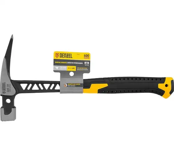 Цельнокованый молоток кровельщика Denzel 600 г, боек с магнитом, двухкомпонентная обрезиненная рукоятка 10623