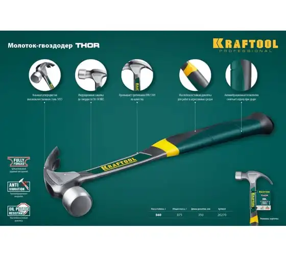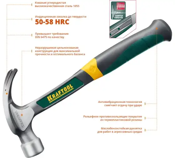 Столярный молоток-гвоздодёр KRAFTOOL Fiberglass 560 г 20265-56_z01