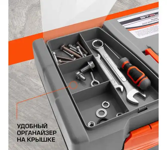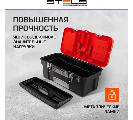 Ящик для инструмента с металлическими замками STELS 16", 410x210x175 мм 90746