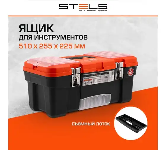 Ящик для инструмента с металлическими замками STELS 20", 510x255x225 мм 90747