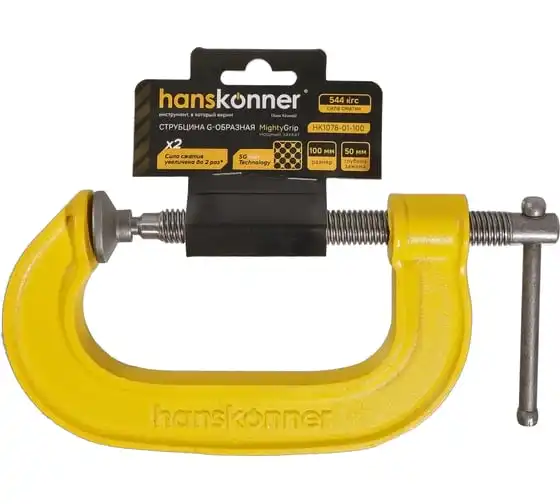 G-образная струбцина Hanskonner 250 мм/10'', чугун, оксидированный винт HK1078-01-250