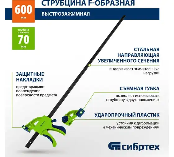 Быстрозажимная F-образная струбцина СИБРТЕХ 20563