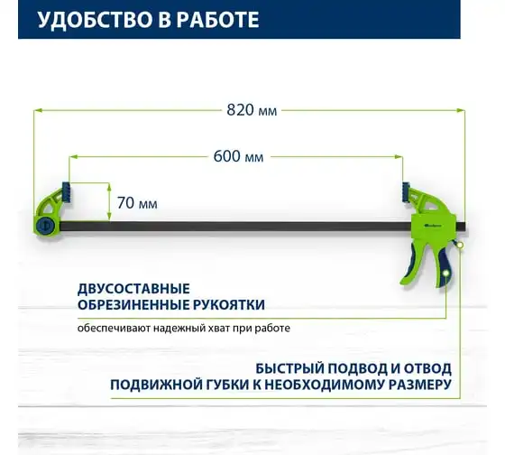 Струбцина быстрозажимная Hanskonner 600 мм, 180-200 кгс, сжим-разжим HK1078-08-60