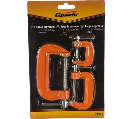 Набор G-образных струбцин 3 шт, 25-50-75 мм SPARTA 206755