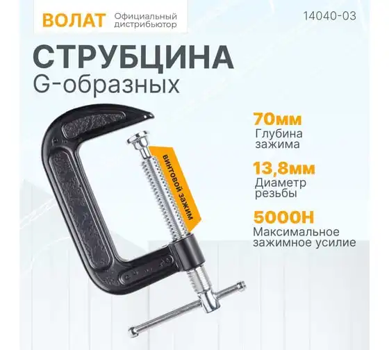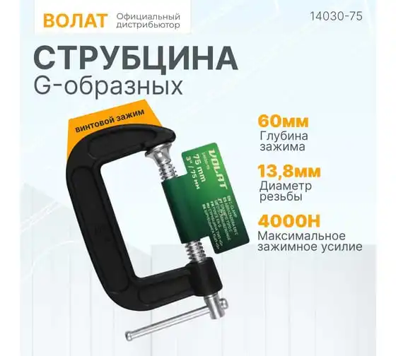 Струбцина ВОЛАТ G-образная 75 мм 14030-75