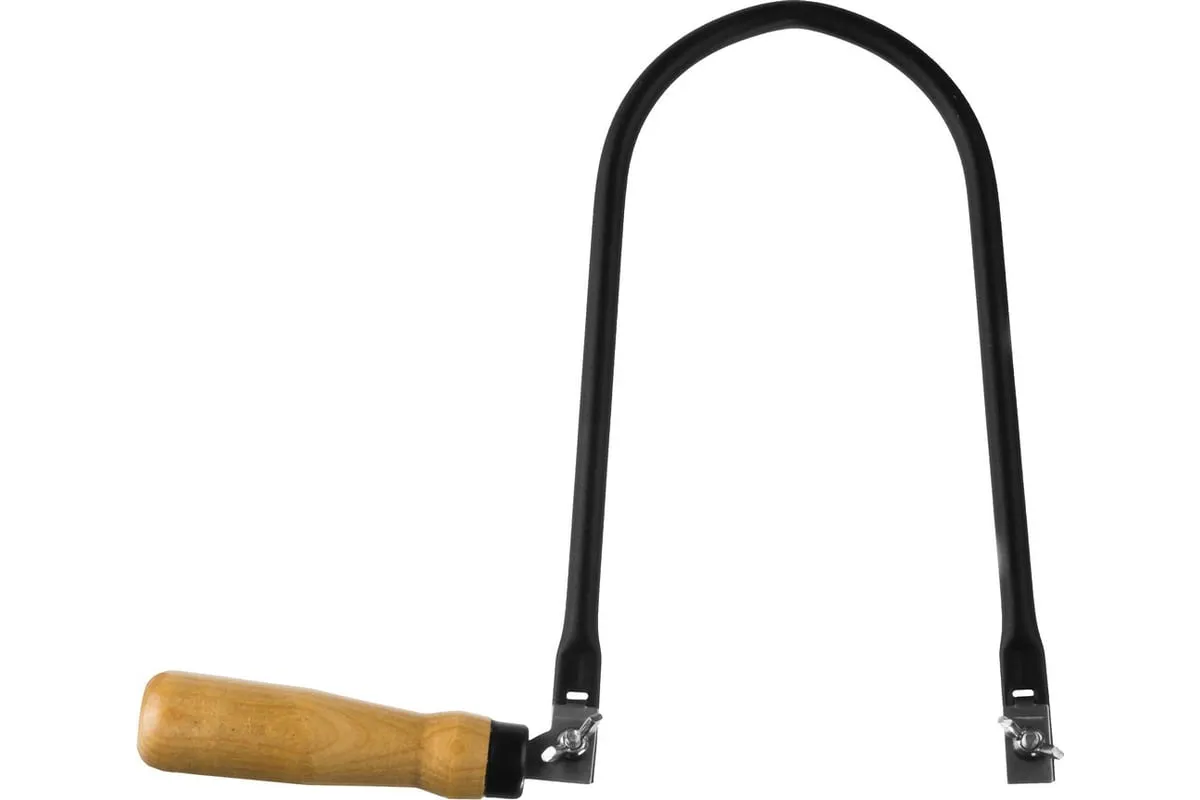 Ручной лобзик деревянная ручка 130 х 300 мм СИБИН 15301-25 - ручной инструмент, применяется для небольших работ по резке. Рабочая часть выполнена из качественного материала, за счет этого обеспечивается износостойкость и долгий срок службы. Внимание! Полотно в комплект поставки не входит!
