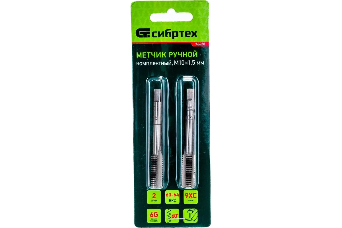 Ручной метчик М10 х 1,5 мм 2 шт. СИБРТЕХ 76628 выполнен из инструментальной стали и обладает повышенной устойчивостью к износу. Применяется для резьбонарезных работ. Размер М10 х 1,5 мм. В комплект входят 2 метчика.