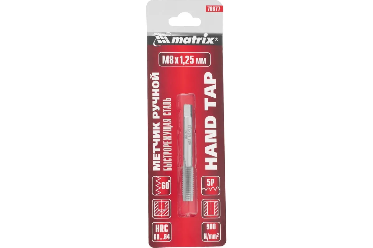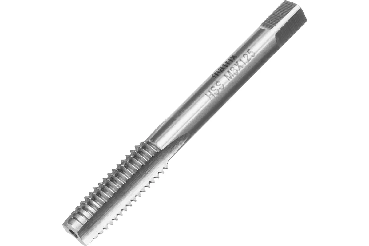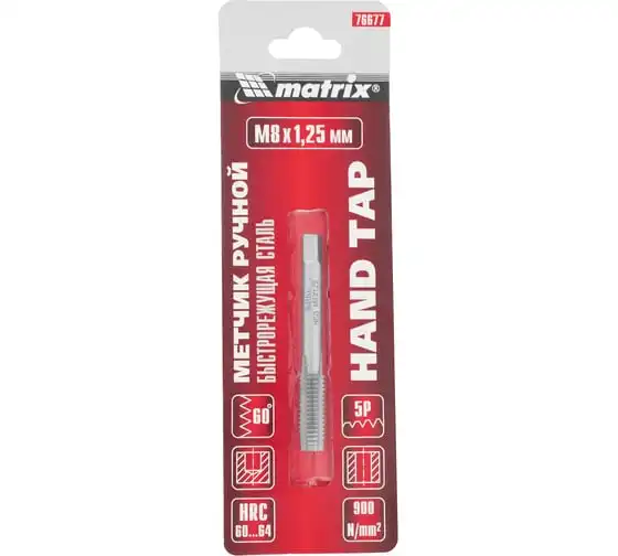 Ручной метчик М8х1.25 мм MATRIX 76677 используется для нарезания резьбы в глухих или сквозных отверстиях. Изготовлен из быстрорежущей стали Р6М5, которая отличается прочностью и стойкостью к механическим воздействиям. Обладает повышенной устойчивостью к износу.
