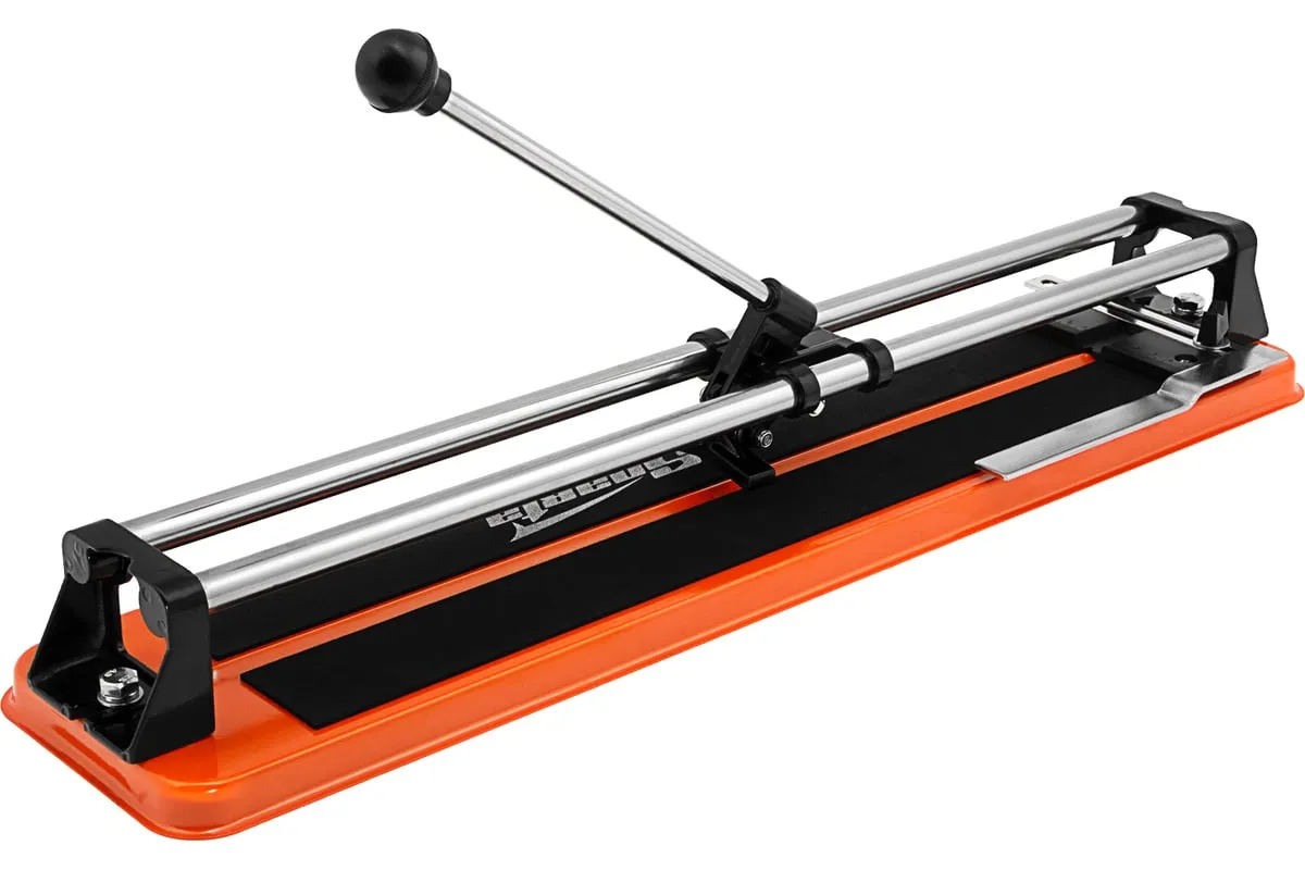 Ручной роликовый плиткорез предназначен для работы с керамической плиткой размером до 500мм. Твердосплавный режущий ролик обеспечивает аккуратный рез плитки толщиной до 8мм. Цельностальные хромированные направляющие надежно защищены от возникновения коррозии. Мягкие амортизирующие накладки препятствуют скольжению плитки. Режущий ролик из карбида вольфрама обладает высокой износостойкостью и ресурсом. Металлическая линейка-угольник обеспечивает точное позиционирование плитки на станине.