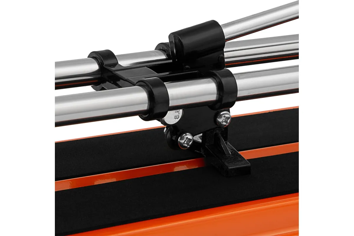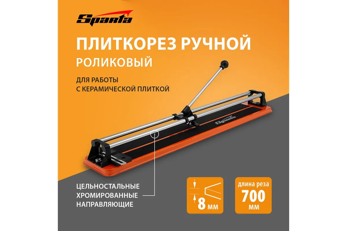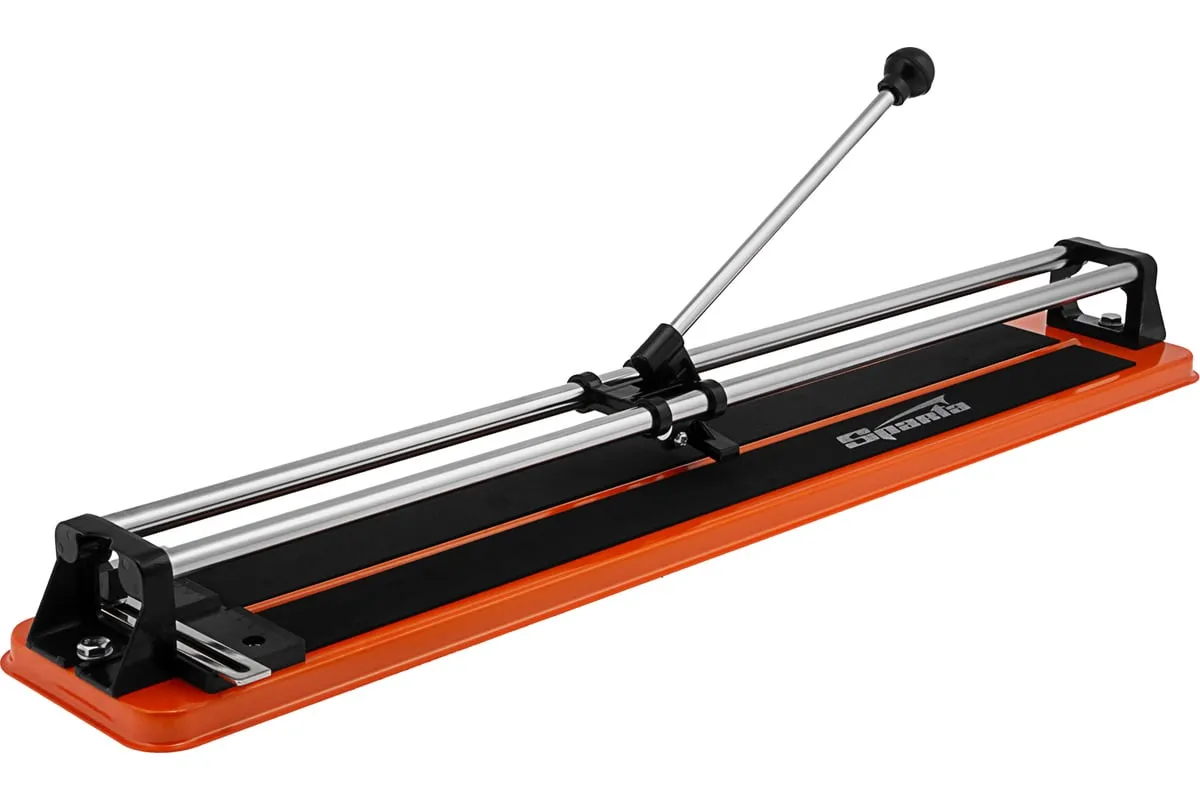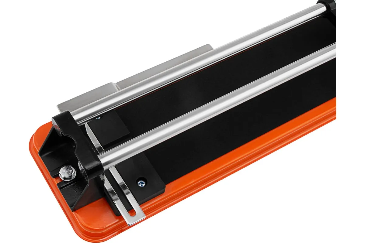 Ручной роликовый плиткорез предназначен для работы с керамической плиткой размером до 700мм. Твердосплавный режущий ролик обеспечивает аккуратный рез плитки толщиной до 8мм. Цельностальные хромированные направляющие надежно защищены от возникновения коррозии. Мягкие амортизирующие накладки препятствуют скольжению плитки. Режущий ролик из карбида вольфрама обладает высокой износостойкостью и ресурсом. Металлическая линейка-угольник обеспечивает точное позиционирование плитки на станине