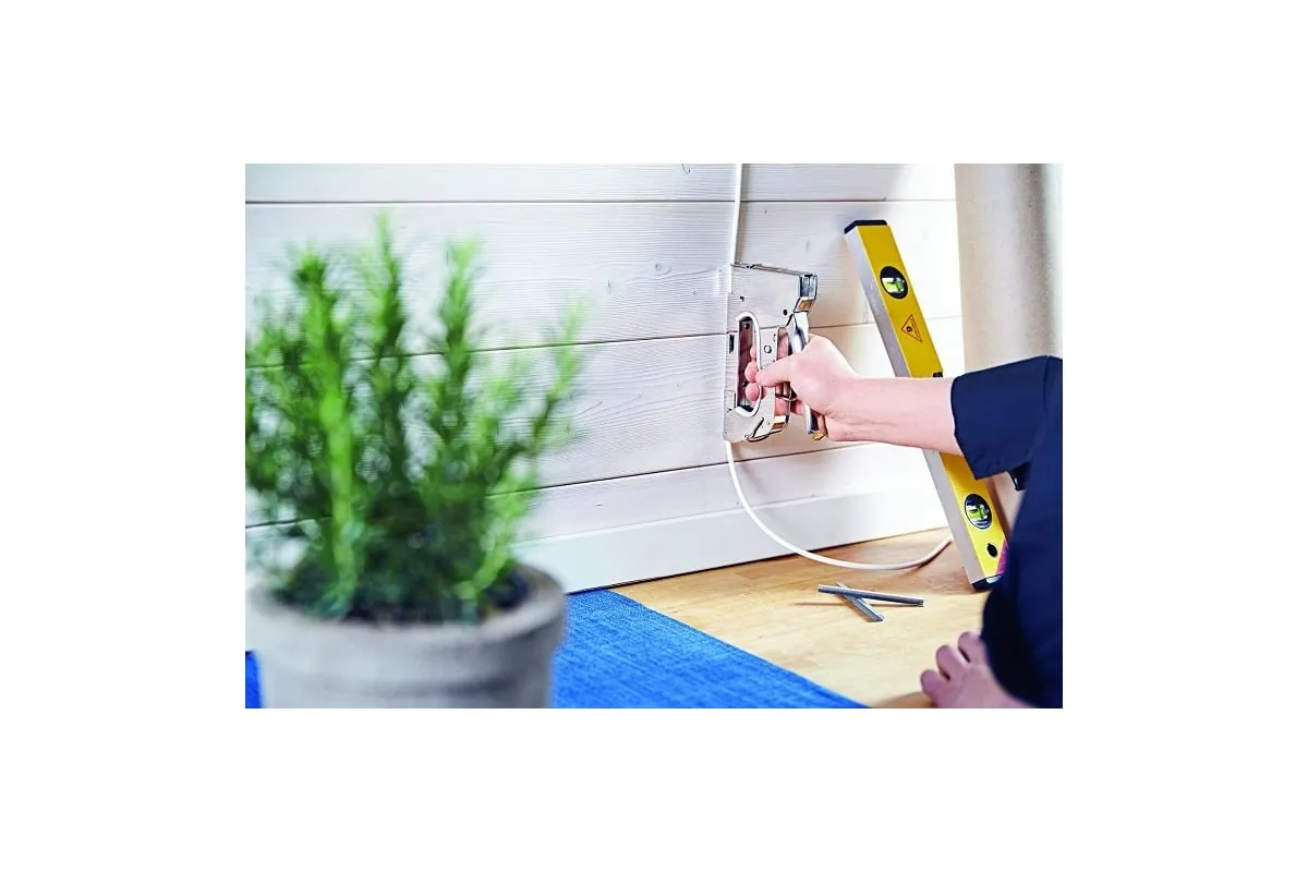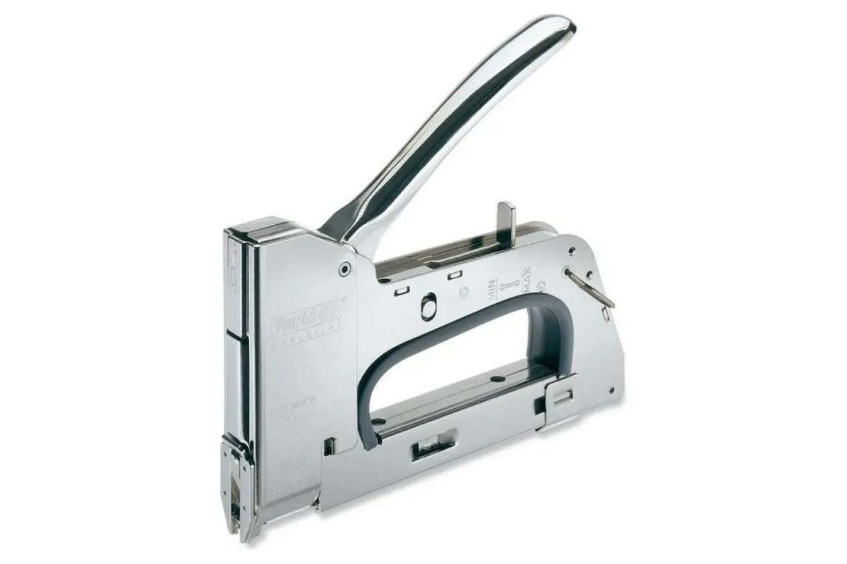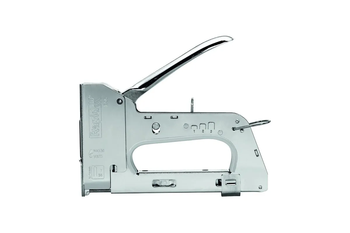 Ручной степлер Rapid R36E CABLELINE RUS 5000070 - специализированный инструмент для работ с низковольтным и коаксиальным кабелем. Отвечает требованиям профессионалов и удобен в обращении. Цельнометаллический корпус повышает прочность и срок службы инструмента. Для безопасности хранения и исключения случайного нажатия стопорная петля удерживает рычаг. Регулировка силы удара позволяет оптимально настроить степлер под плотность материала.