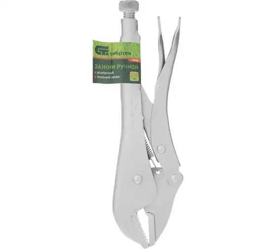 Усиленный ручной зажим Сибртех 18428 длиной 225 мм, с плоским захватом, используется для удержания различных предметов при проведении слесарно-монтажных и сварочных работ. Губки захватывают деталь, а фиксатор блокирует их в необходимом положении. Зажим популярен в профессиональной и бытовой сфере.