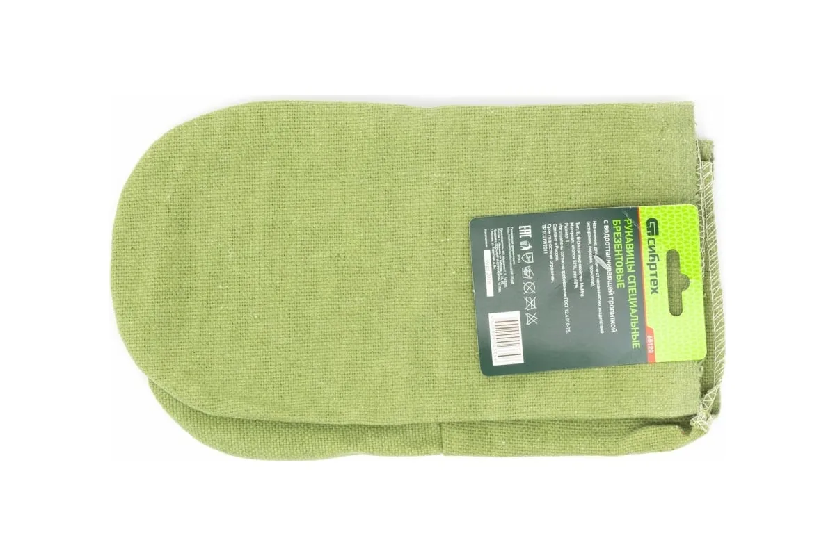 Рукавицы СИБРТЕХ 68120 предназначены для выполнения строительных и сельскохозяйственных работ. Защищают кожу рук от бытовых загрязнений и натираний. Изготовлены из огнеупорного водоотталкивающего сверхпрочного брезента, что позволяет с их помощью работать с горячими деталями и инструментами. Имеют длительный срок эксплуатации. Материал/плотность - брезент ВО/340-360 г/м3.