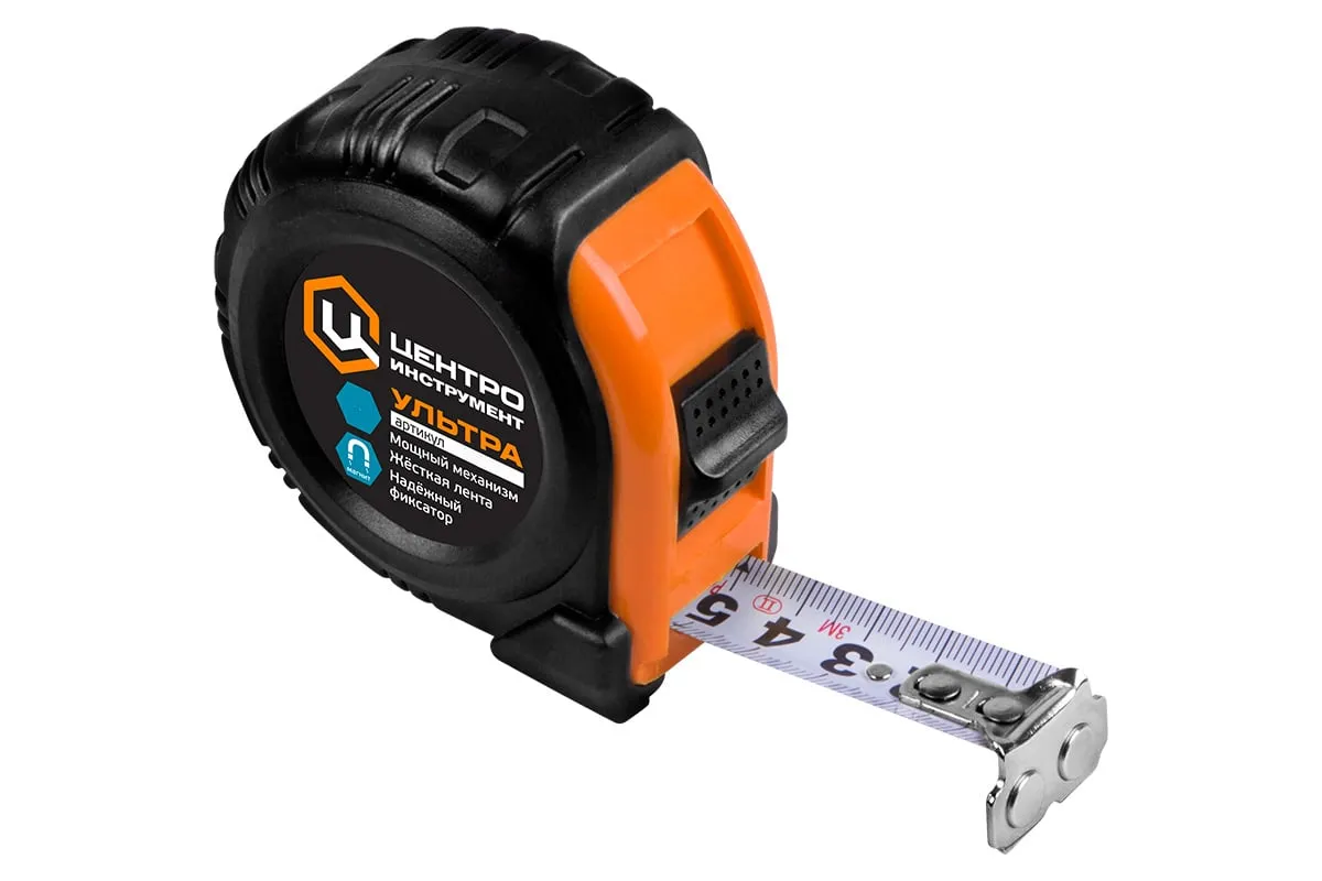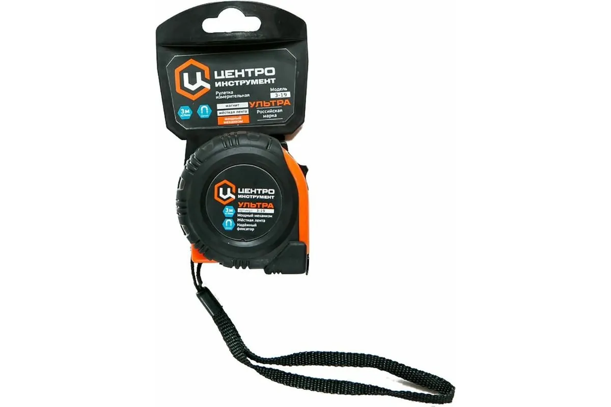 Рулетка 3мх19мм Центроинструмент ULTRA применяется для линейных измерительных работ. Обрезиненный корпус защищает рулетку при падении, увеличивая тем самым срок ее службы. Оснащена фиксатором мерной ленты для удобства производимых измерений, а также механизмом возврата ленты. На корпусе расположен ремешок, который позволяет переносить изделие на запястье или на поясе.