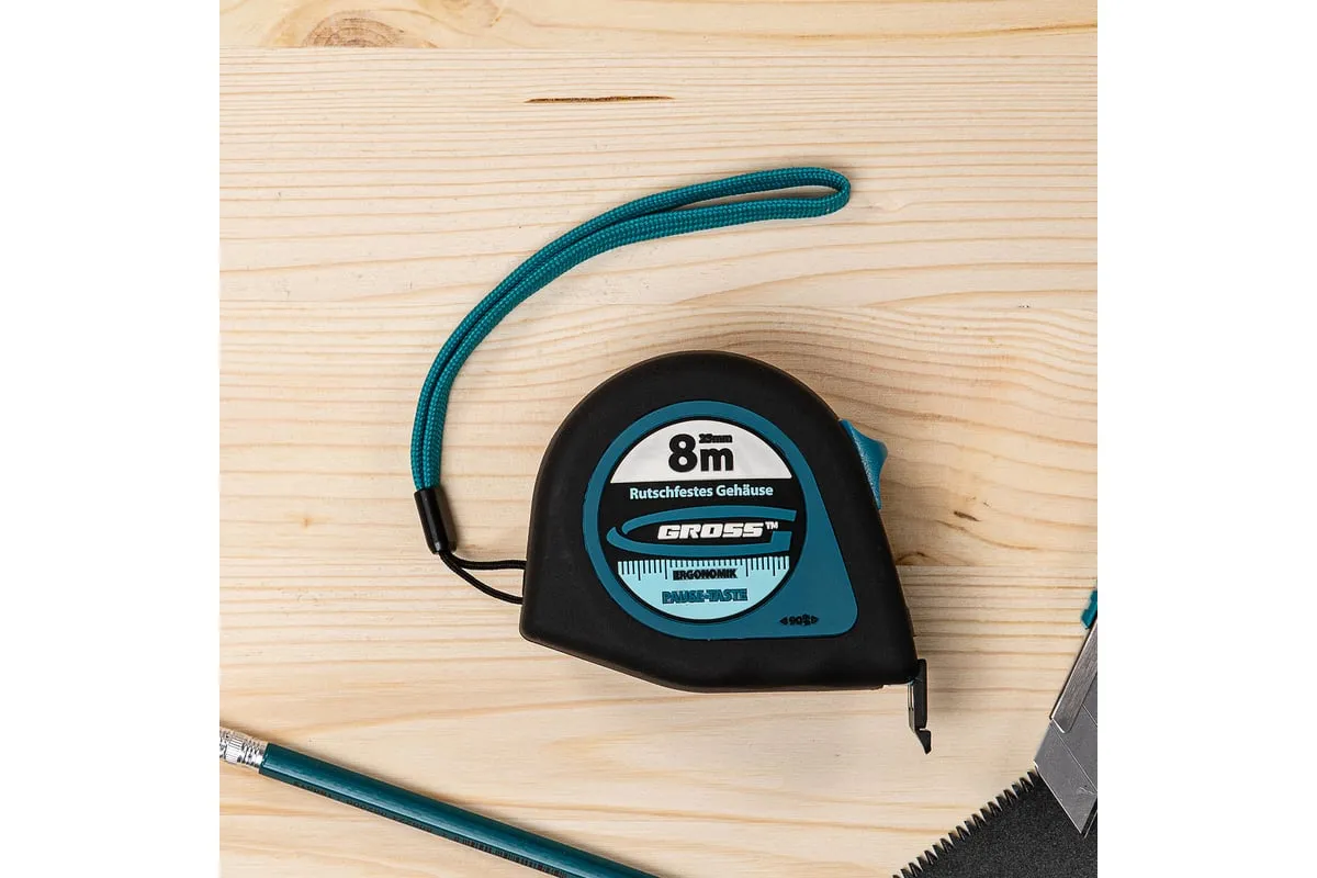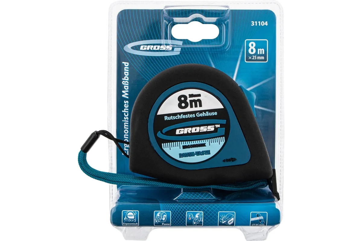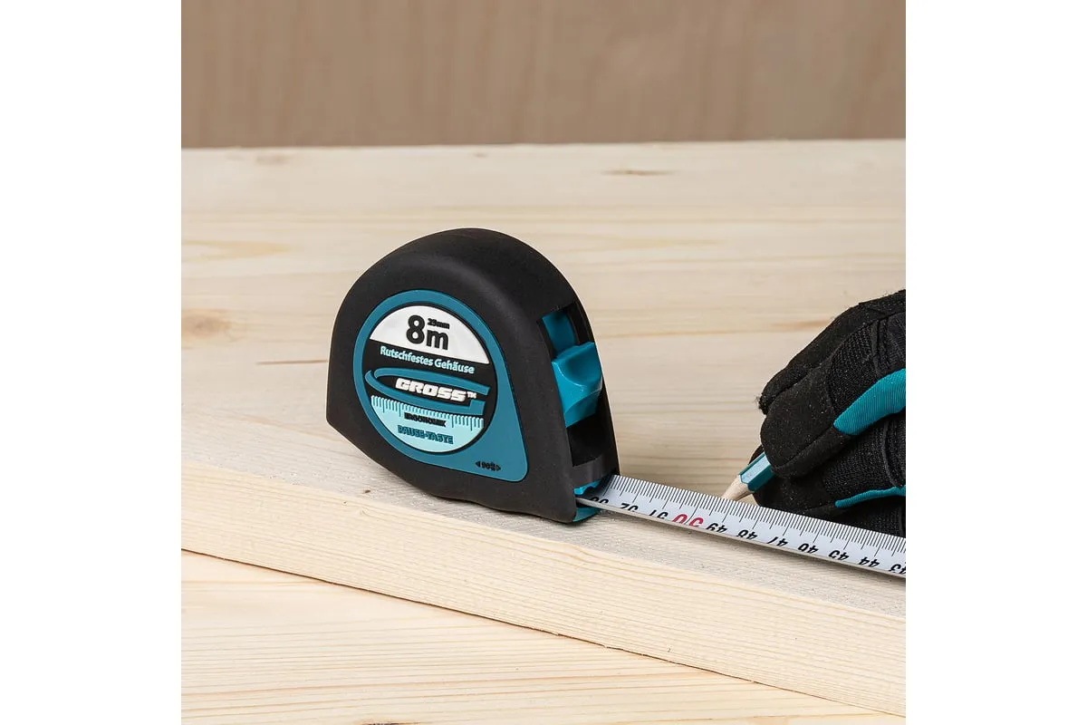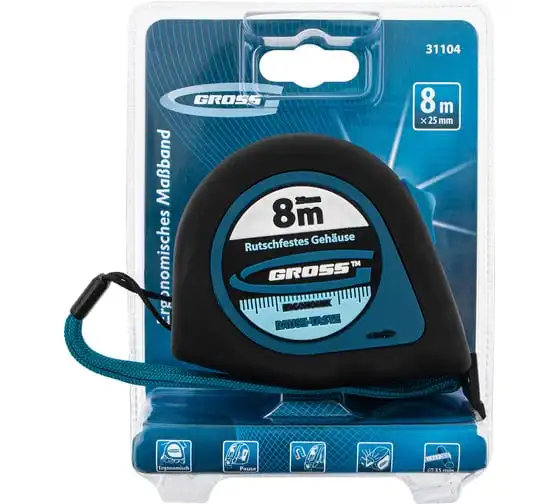 Рулетка Gross «Ergonomisch» 31104 с лентой 8 м х 25 мм и магнитным обрезиненным зацепом пригодится в хозяйстве и на строительной площадке для проведения измерительных работ. Этот карманный инструмент удобно брать с собой на выездные работы. За счет обрезиненного магнитного зацепа полотно можно зафиксировать на металлических поверхностях, также возможно измерение конструкций круглой и изогнутой формы, например, труб.