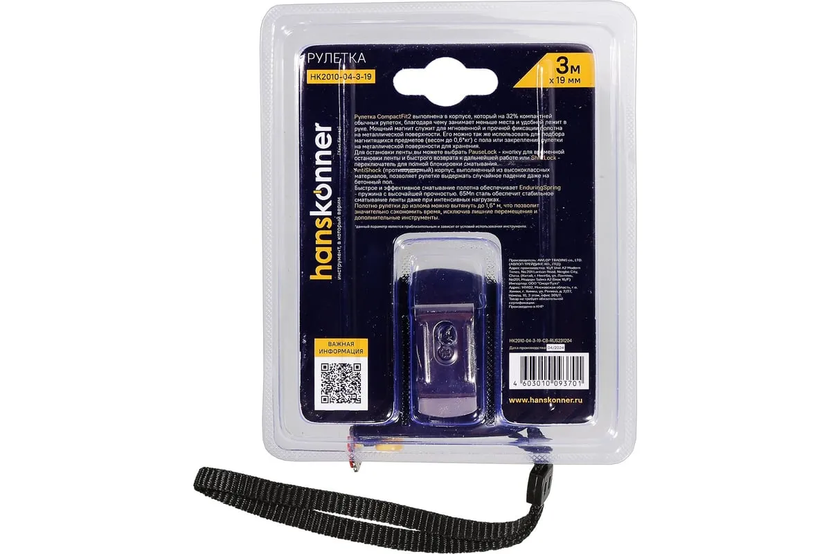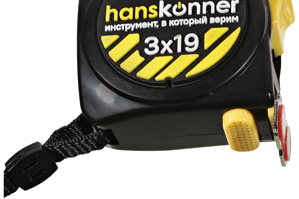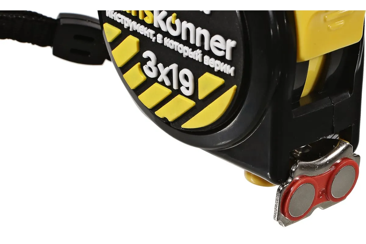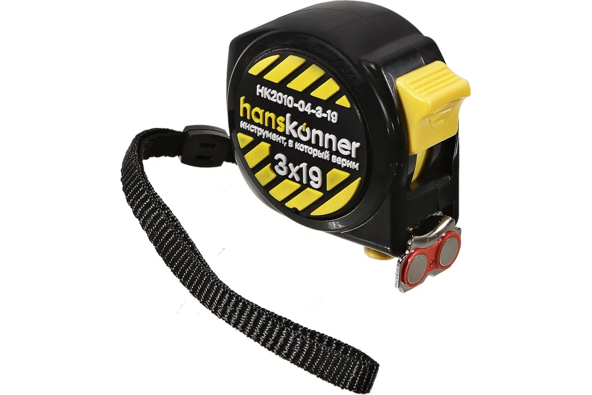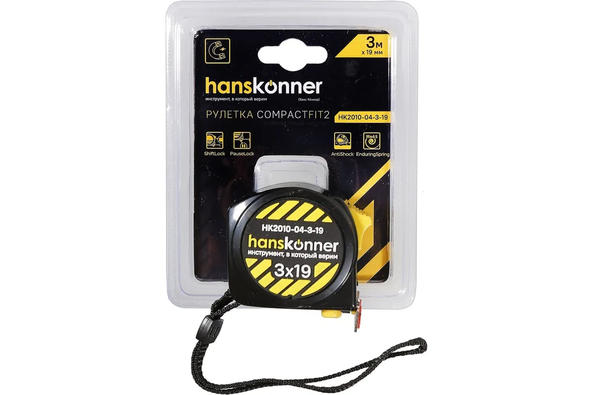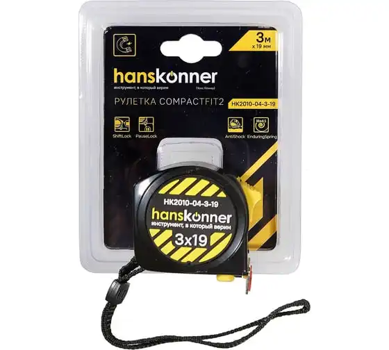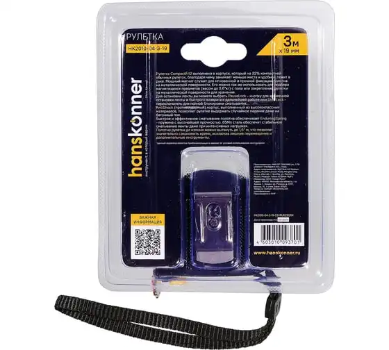 Рулетка Hanskonner 3x19 HK2010-04-3-19 используется для измерительных работ в промышленности и в быту. Корпус рулетки на 32% меньше стандартного, что обеспечивает удобное использование и хранение. Полотно изготовлено из 60C стали, что гарантирует более дальний вылет без излома и устойчивость к внешнему воздействию. Мощный магнит служит для мгновенной и прочной фиксации полотна на металлической поверхности. Также магнит можно использовать для подбора магнитящихся предметов весом до 0.8 кг с пола или закрепления рулетки на металлической поверхности для хранения. Пружина EnduringSpring с высочайшей прочностью, изготовленная из стали Мп65, обеспечивает стабильное сматывание ленты даже при интенсивных нагрузках. Полотно рулетки до излома можно вытянуть до 1.6 метров, что значительно сэкономит время, исключит лишние перемещения и привлечение дополнительных инструментов. Дополнительные характеристики: