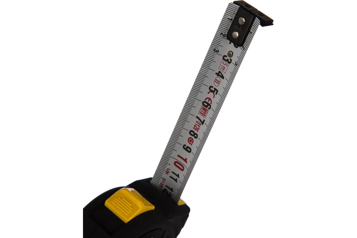 Рулетка оснащена полотном из хромванадиевой стали с увеличенной толщиной по сравнению с обычными рулетками. Это обеспечивает более дальний вылет без излома ленты. Предельная длина достигает 220 см. Пружина для сматывания полотна также изготовлена из CrV стали и увеличивает ресурс на количество сматываний в 2,5 раза. TPR покрытие корпуса из ударопрочного пластика обеспечивает надежное удержание инструмента в мокрых ладонях. Небольшой вес корпуса также способствует облегченному удержанию в течение продолжительного периода времени. Четкая индикация шкалы позволяет без труда работать даже в темноте. Инструмент дополнительно имеет антикоррозийное полимерное покрытие на ленте, что увеличивает срок службы разметки.