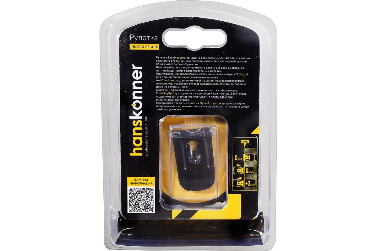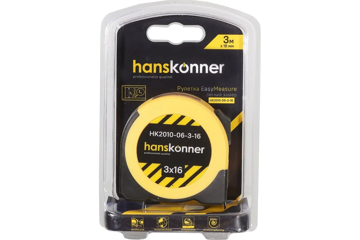 Рулетка EasyMeasure оснащена специальным окном для измерения величин в ограниченном пространстве с автоматической суммой длины корпуса самой рулетки. Выполнение таких задач возможно делать в 2 раза быстрее, т.к. нет необходимости в дополнительных замерах. При управлении сматыванием ленты вы можете выбрать ShiftLock для полной блокировки сматывания полотна. AntiShock корпус, выполненный из усиленных высококлассных материалов, позволяет рулетке выдерживать случайное падение даже на бетонный пол. Быстрое и эффективное сматывание полотна обеспечивает EnduringSpring - пружина с высочайшей прочностью. 65Mn сталь поддерживает стабильное сматывание ленты даже при интенсивных нагрузках. Нейлоновое покрытие полотна NylonArmour защищает шкалу от повреждений и позволяет сохранить её функциональность в самых тяжёлых условиях.