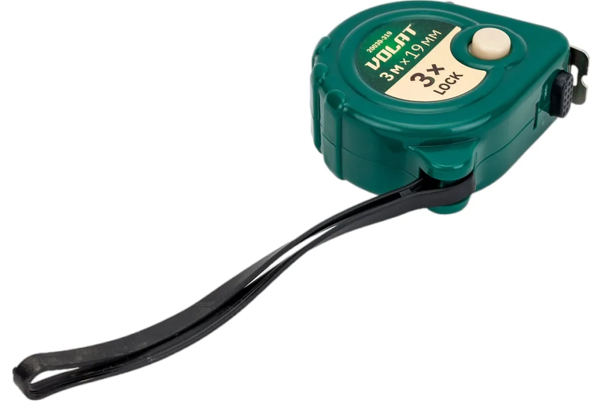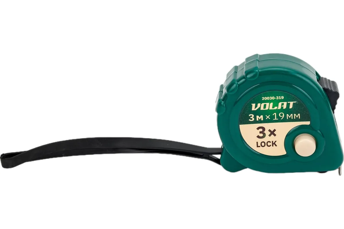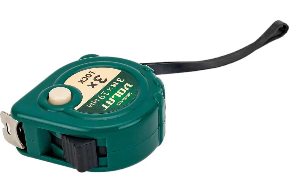 Рулетка ВОЛАТ 3 м, 19 мм, пластмассовый корпус 20030-319 используется при выполнении измерительных или разметочных работ. Корпус рулетки выполнен из качественного ABS-пластика, что обеспечивает долговечность и надежность. Стальное полотно не подвержено излому. Концевой крючок, автоматическая намотка ленты, стопорный механизм облегчают работу с инструментом.