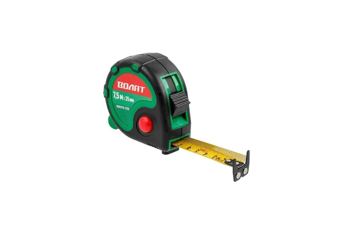 Рулетка ВОЛАТ 7,5 м 20070-725 применяется при выполнении измерительных или разметочных работ. Корпус рулетки изготовлен из качественного ABS-пластика и снабжен обрезиненным чехлом для комфортной эксплуатации. Эргономичное устройство рулетки включает три независимых механизма фиксирования ленты, что делает работу с рулеткой максимально удобной.
