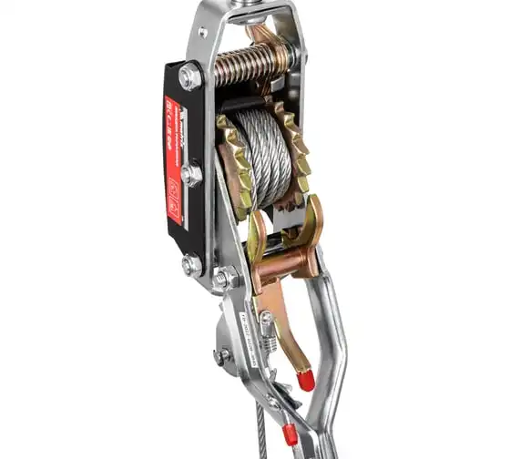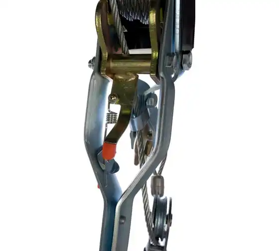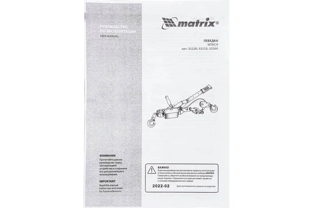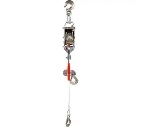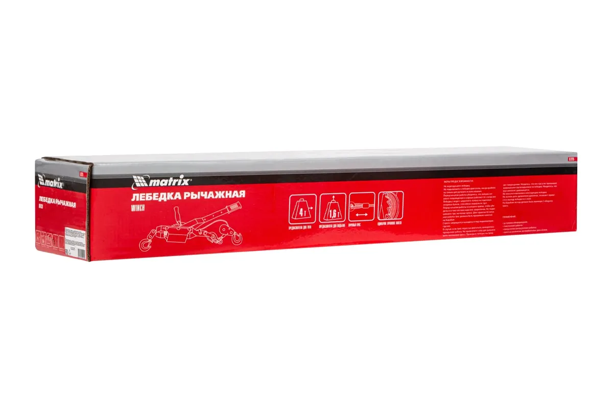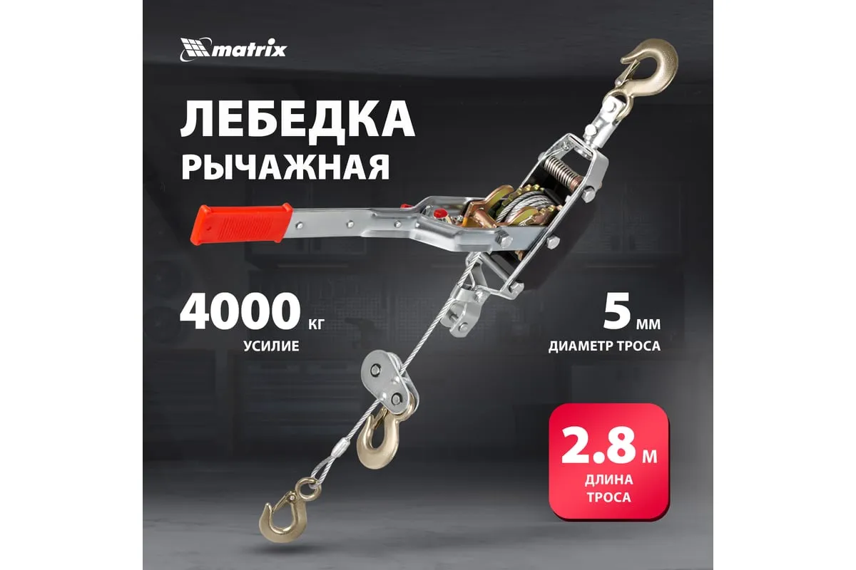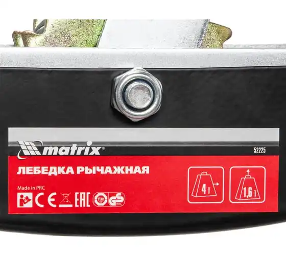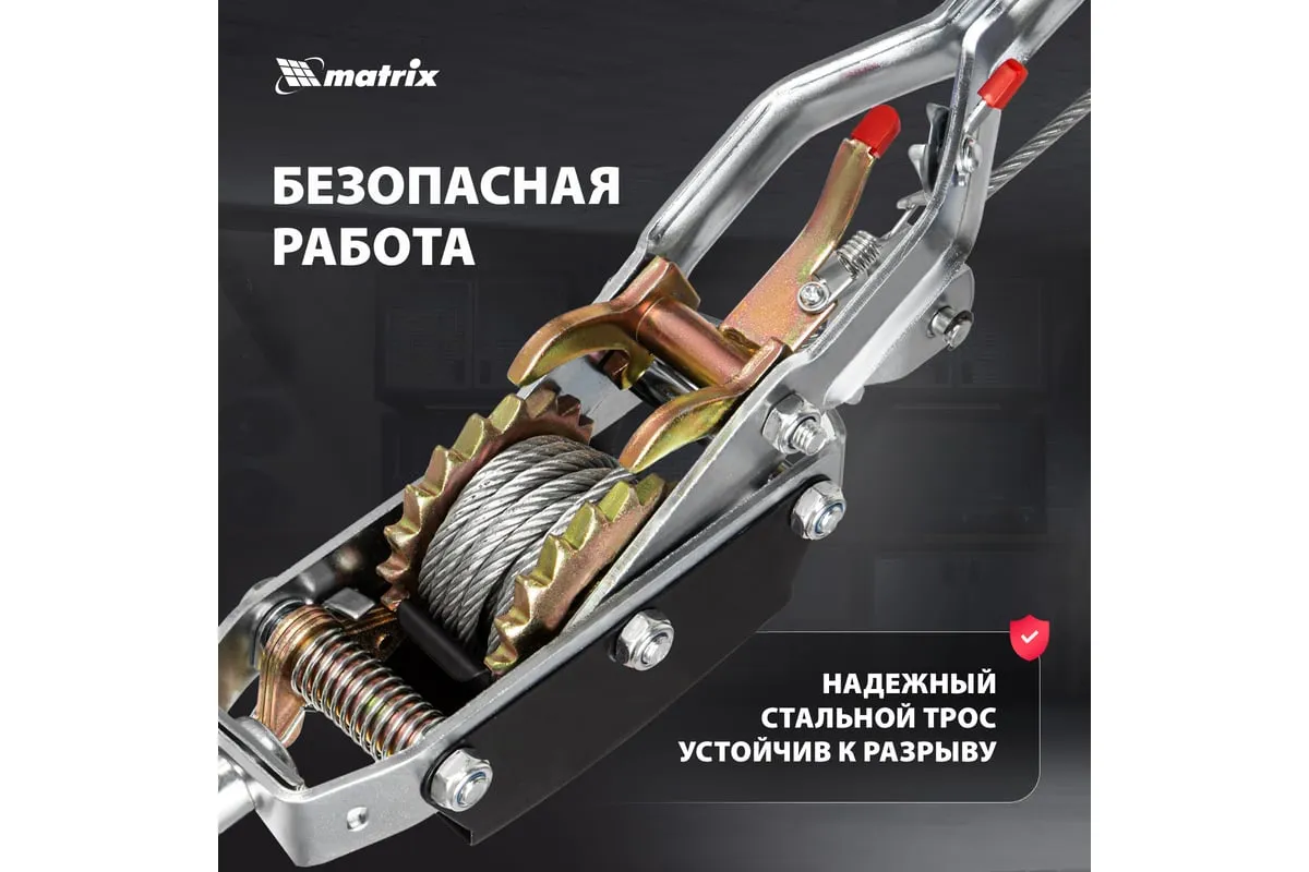 Рычажная лебедка MATRIX 52225 представляет собой простое и удобное устройство для перемещения груза по горизонтали или по вертикали. Особенностью модели является прочное двойное храповое колесо и долговечный трос толщиной 5 мм. Для надежной фиксации груза конструкцией приспособления предусматриваются защитные скобы на каждом из трех крюков.