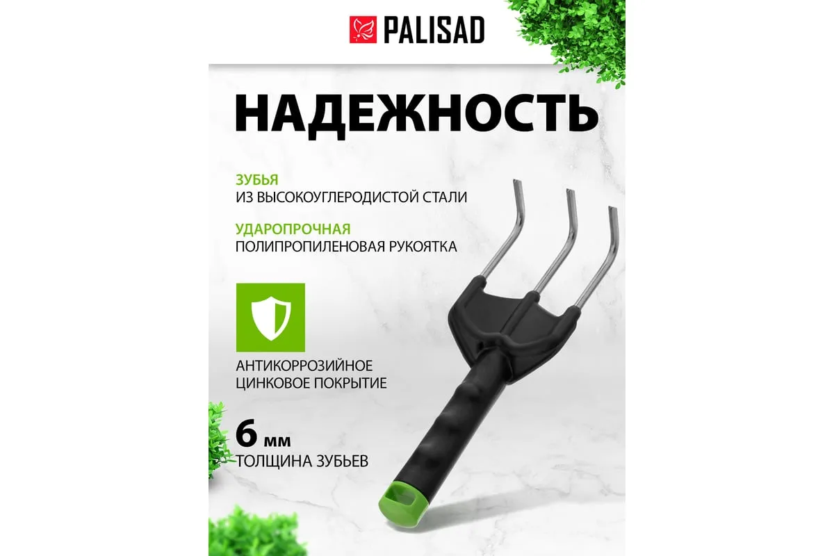 Стальной 3-зубый рыхлитель Palisad BASE 62068 размером 85 x 245 мм, с полипропиленовой рукояткой, — удобный инструмент для рыхления почвы. Благодаря оптимальной геометрии рабочей части обеспечивает максимальную эффективность работ. Будет полезен для ухода за клумбами в цветнике и грядками в огороде.