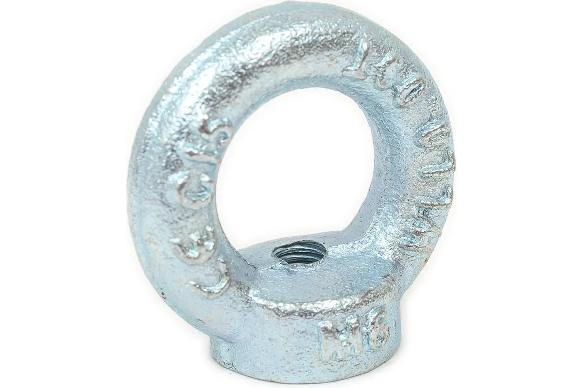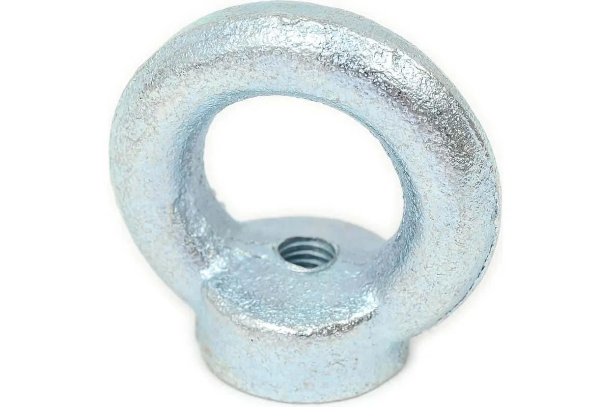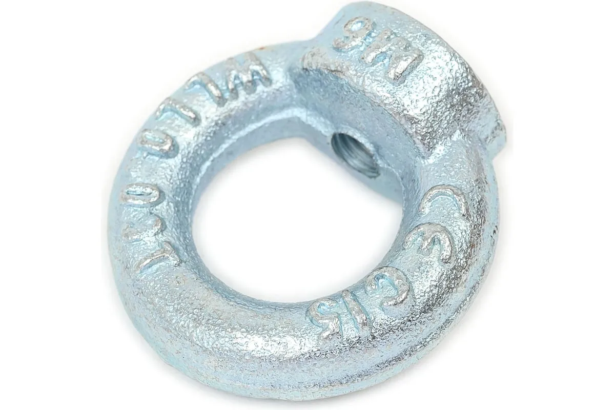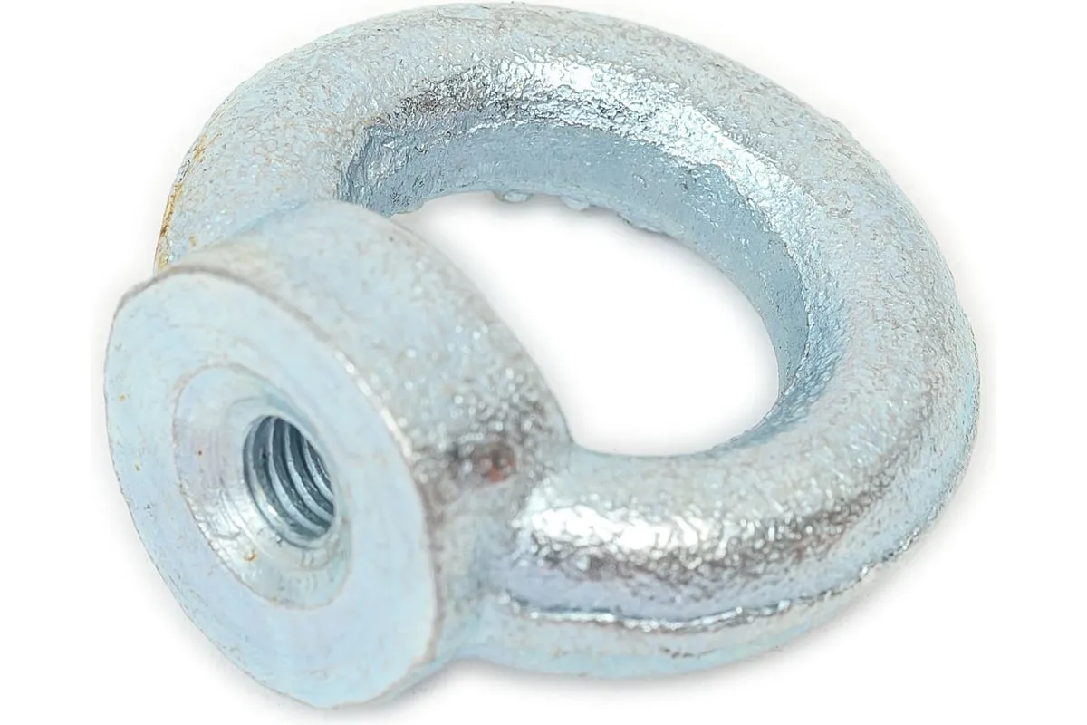 Рым-гайка М6 DIN 582 STARFIX представляет собой кольцо с отверстием и метрической резьбой. Размер определяется по резьбовой части. Используется для соединения цепей и тросов, креплений при растяжках, применяется для подъема грузов при такелажных работах. Рым-гайка изготовлена из стали и оцинкована.