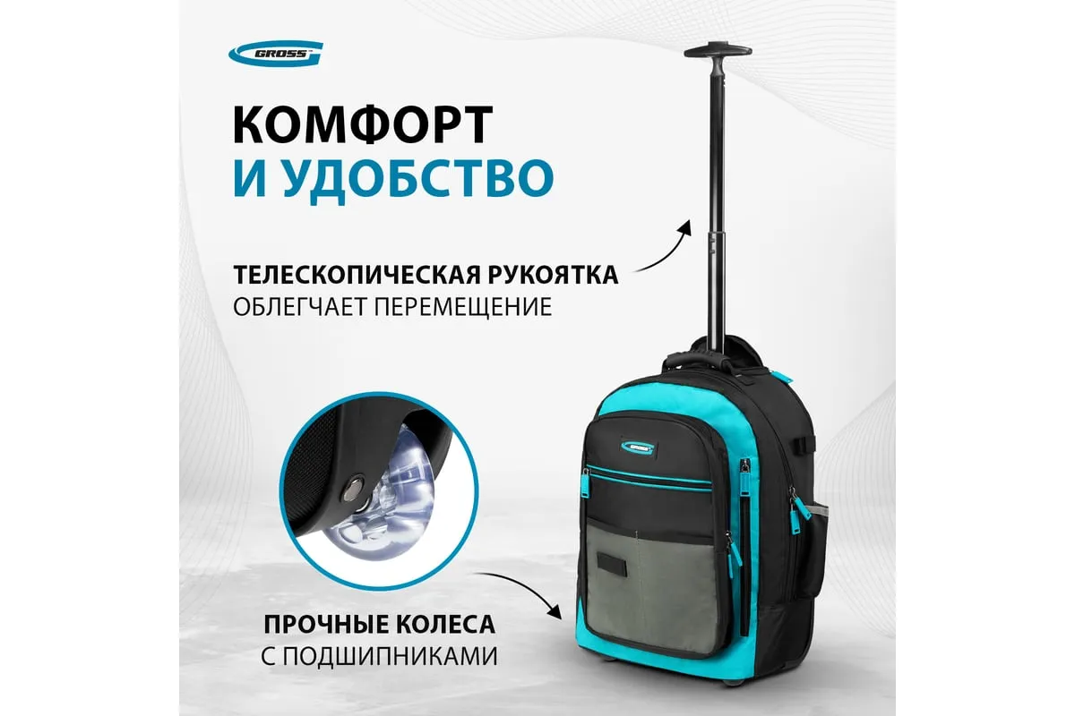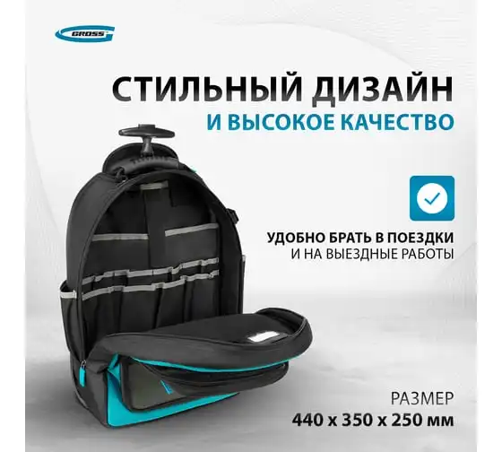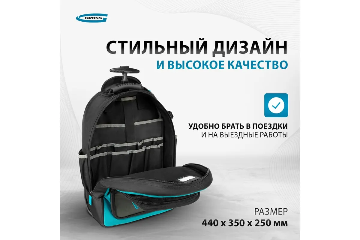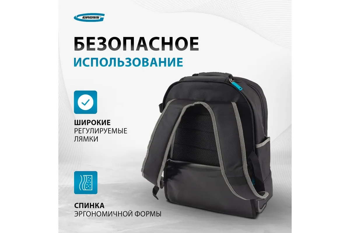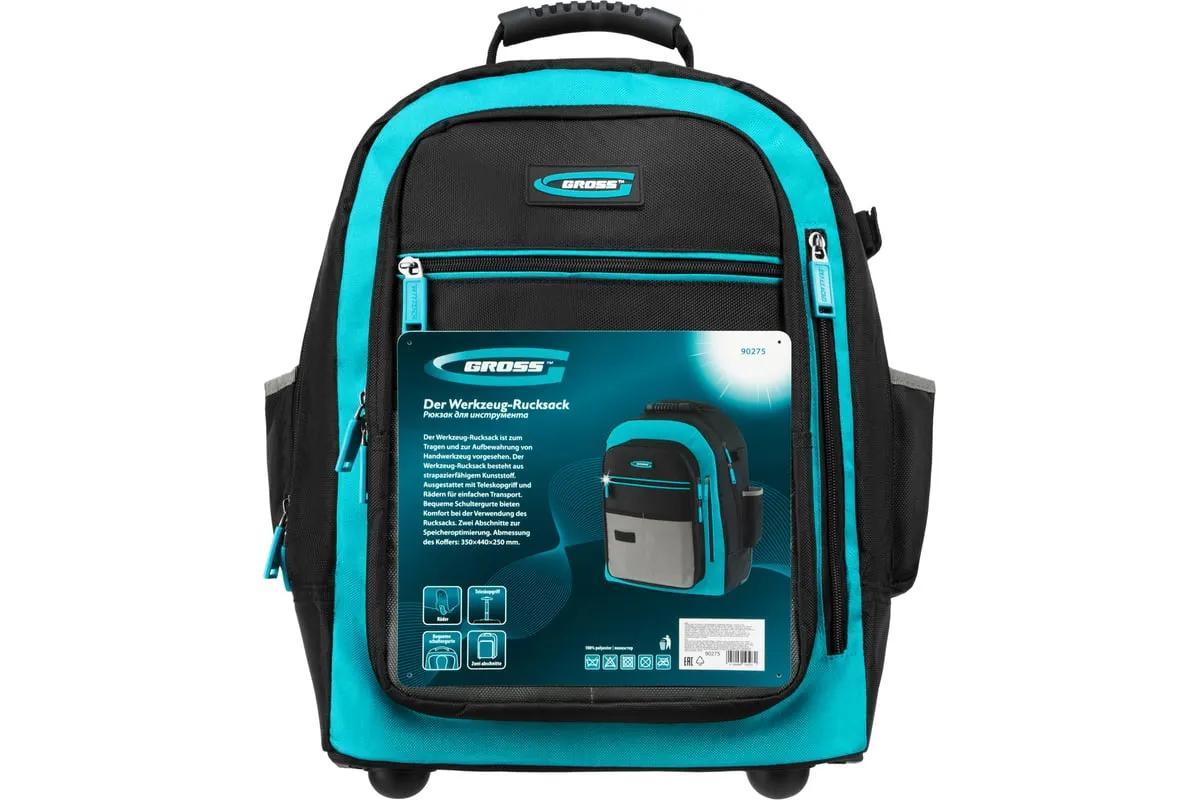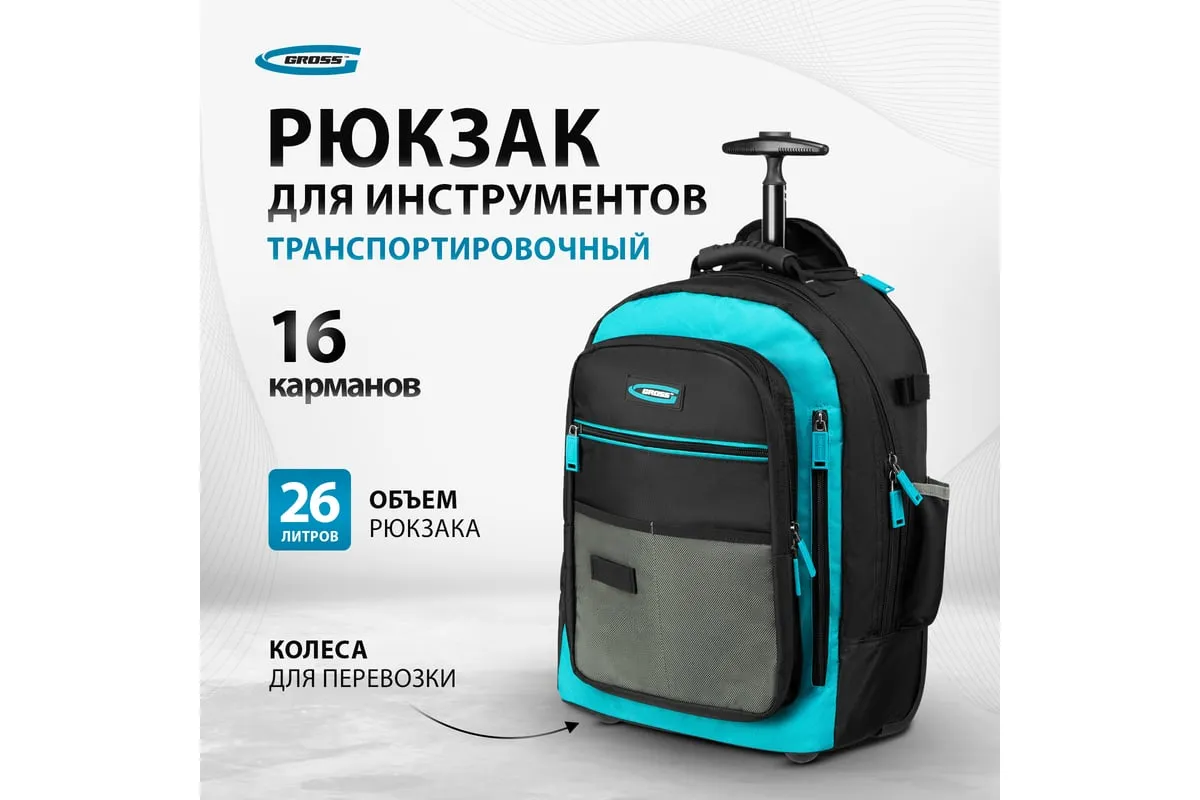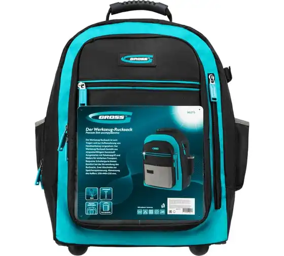 Рюкзак Gross 90275 используется для хранения и транспортировки ручного инструмента. В двух секциях с 16 внутренними и внешними карманами можно разместить все необходимые предметы. Рюкзак удобно брать в поездки и на выездные работы.