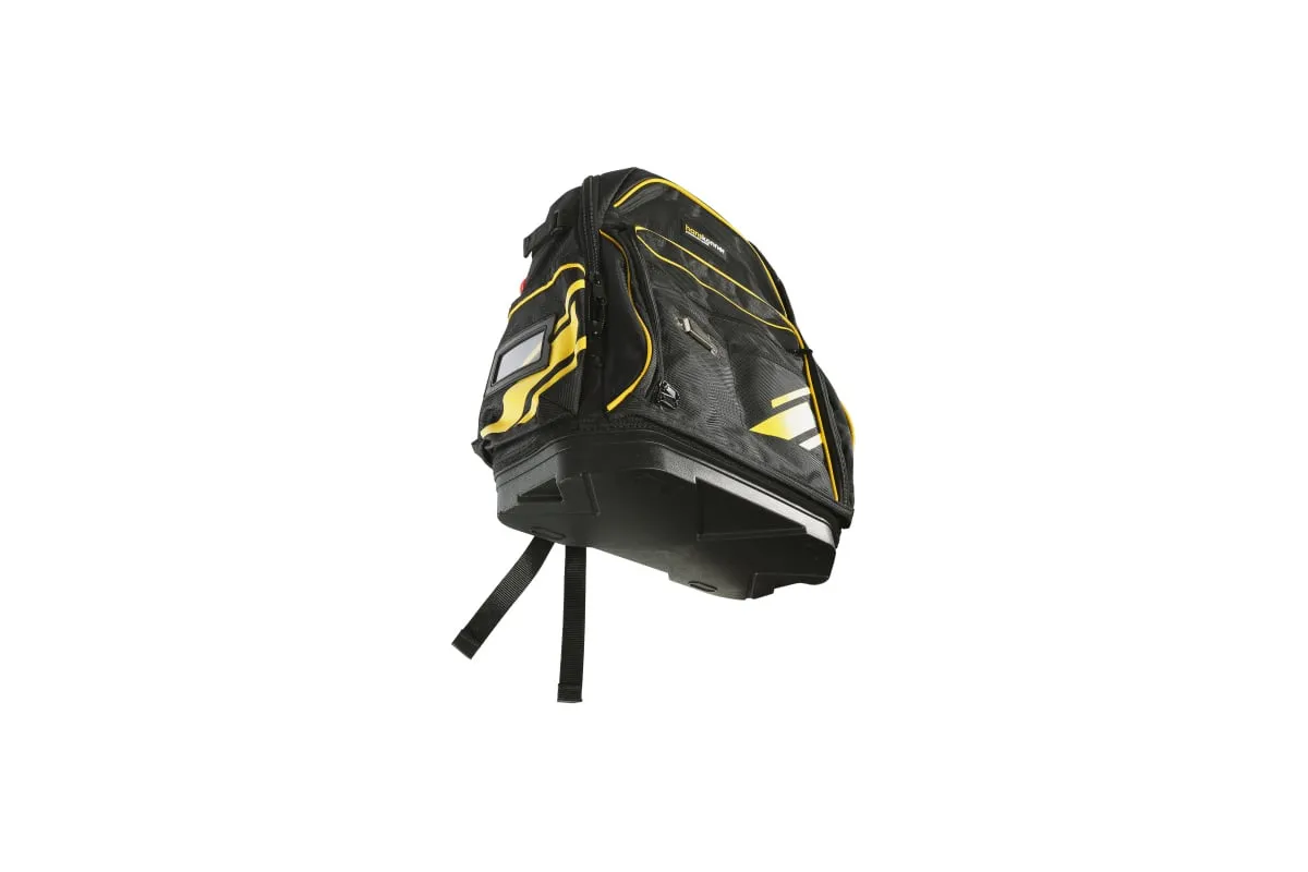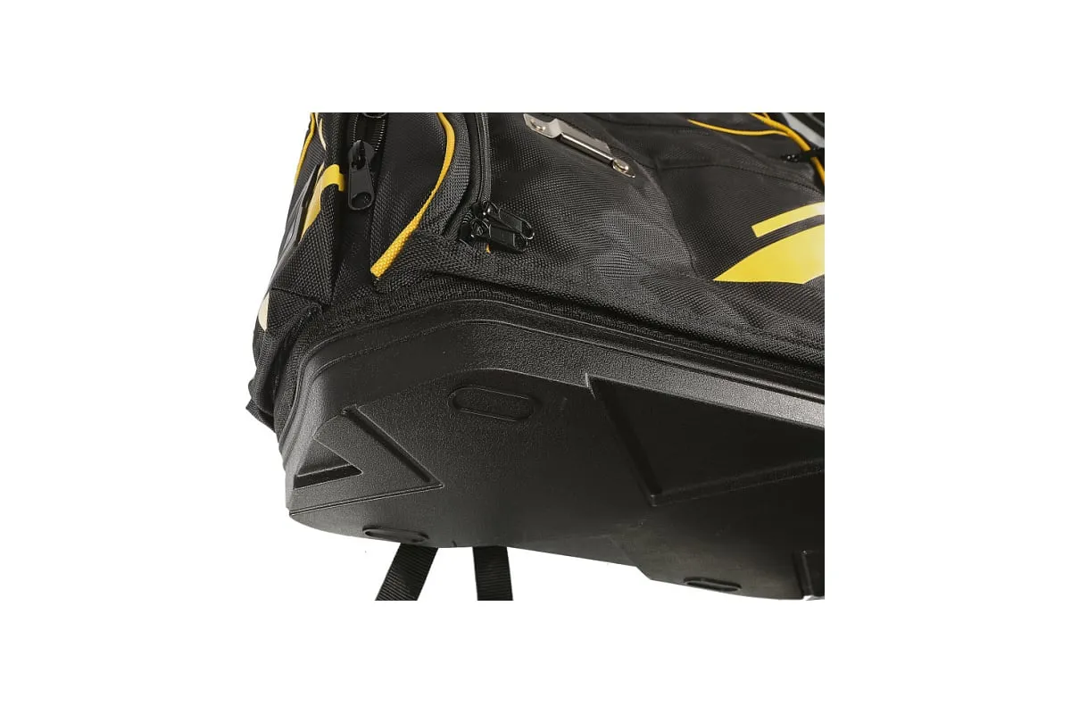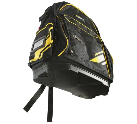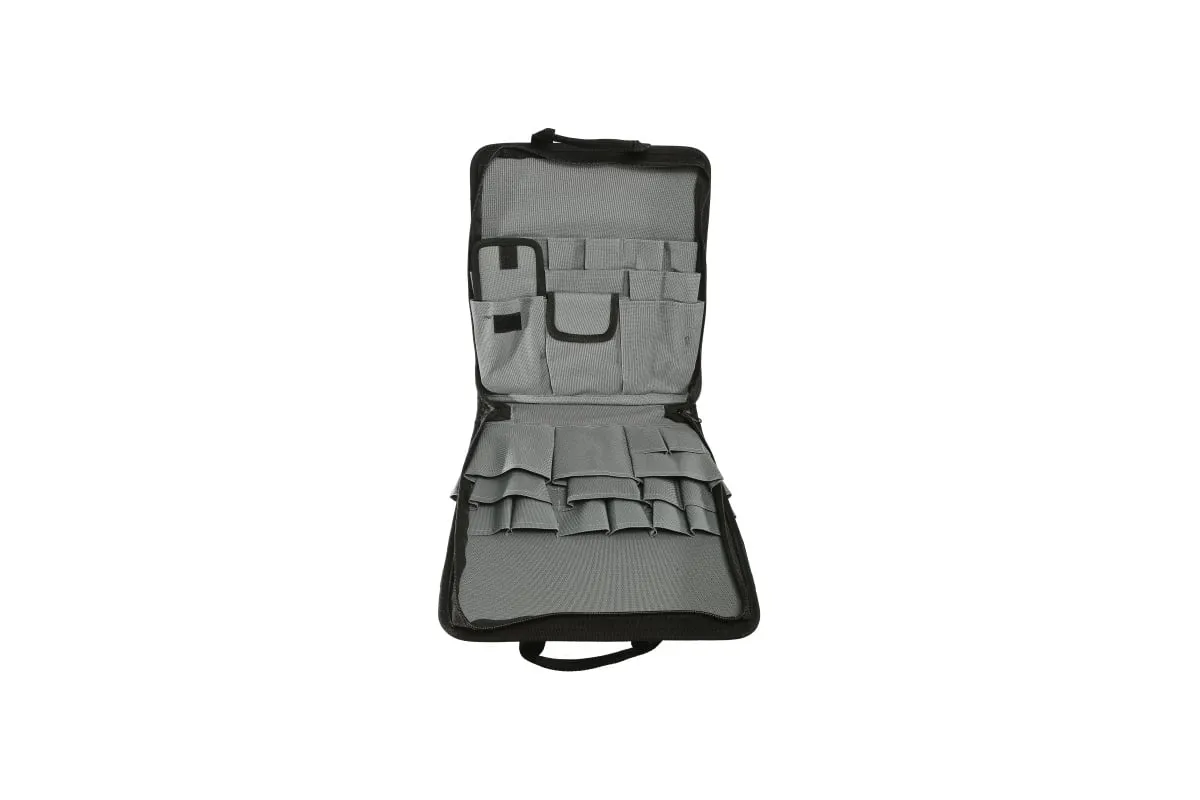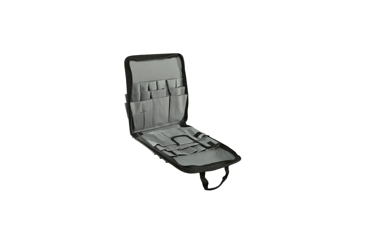 Рюкзак оснащён кодовым замком для безопасного хранения инструмента внутри. 100% полиэстер выдерживает нагрузку в 30 кг, устойчив к растяжению и стиранию. Быстрая широкая молния позволяет мгновенно открыть рюкзак и получить доступ к инструменту. Съёмный органайзер во внутреннем отделе сумки помогает зонировать пространство для инструмента, а так же сам снабжен карманами. Возможность его извлечения позволяет полностью контролировать эргономику хранения инструмента. Дополнительные вставки в стенки и дно рюкзака позволяют ему лучше держать эргономичную форму при переноске инструментов. Удобная скоба для хранения рулетки обеспечивает быстрый доступ к ней. Сетчатая система вентиляции спинки рюкзака и текстурный рисунок контролируют отвод нагретого и насыщенного влагой воздуха. Этим предотвращается перегрев спины пользователя при переноске инструмента.