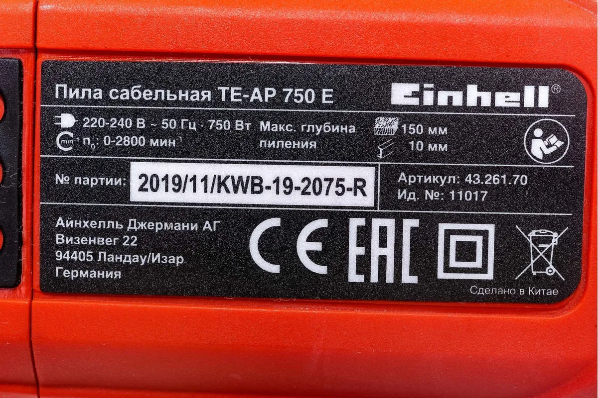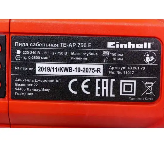 Сабельная пила Einhell TE-AP 750 E 4326170 предназначена для резки заготовок из дерева.
