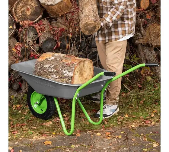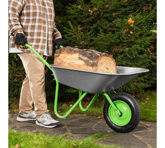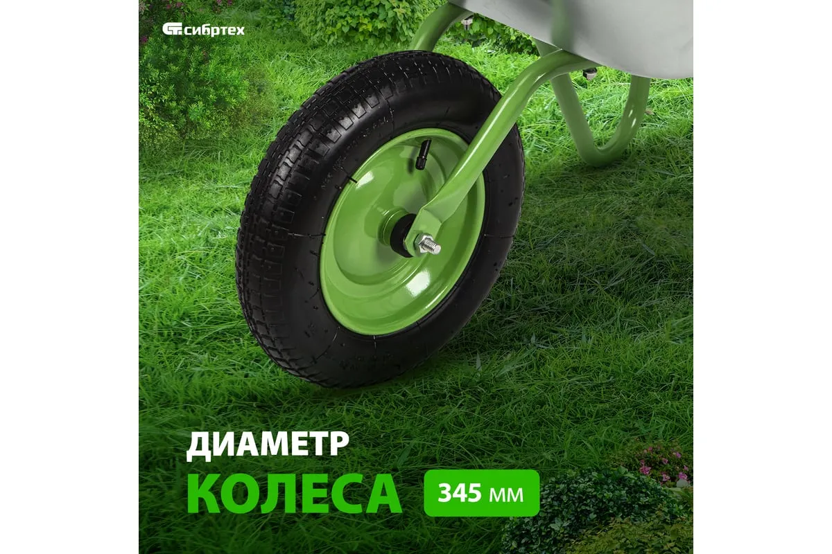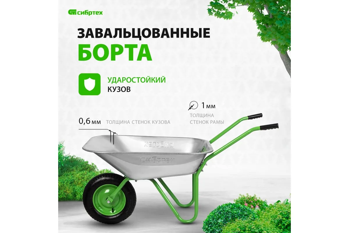 Садовая облегченная тачка Сибртех 689615 с кузовом объемом 65 л служит для транспортировки легких грузов во время садовых и сельскохозяйственных работ. С ее помощью можно привести в порядок территорию и убрать листья, собрать урожай и выполнить другие работы на загородном участке.