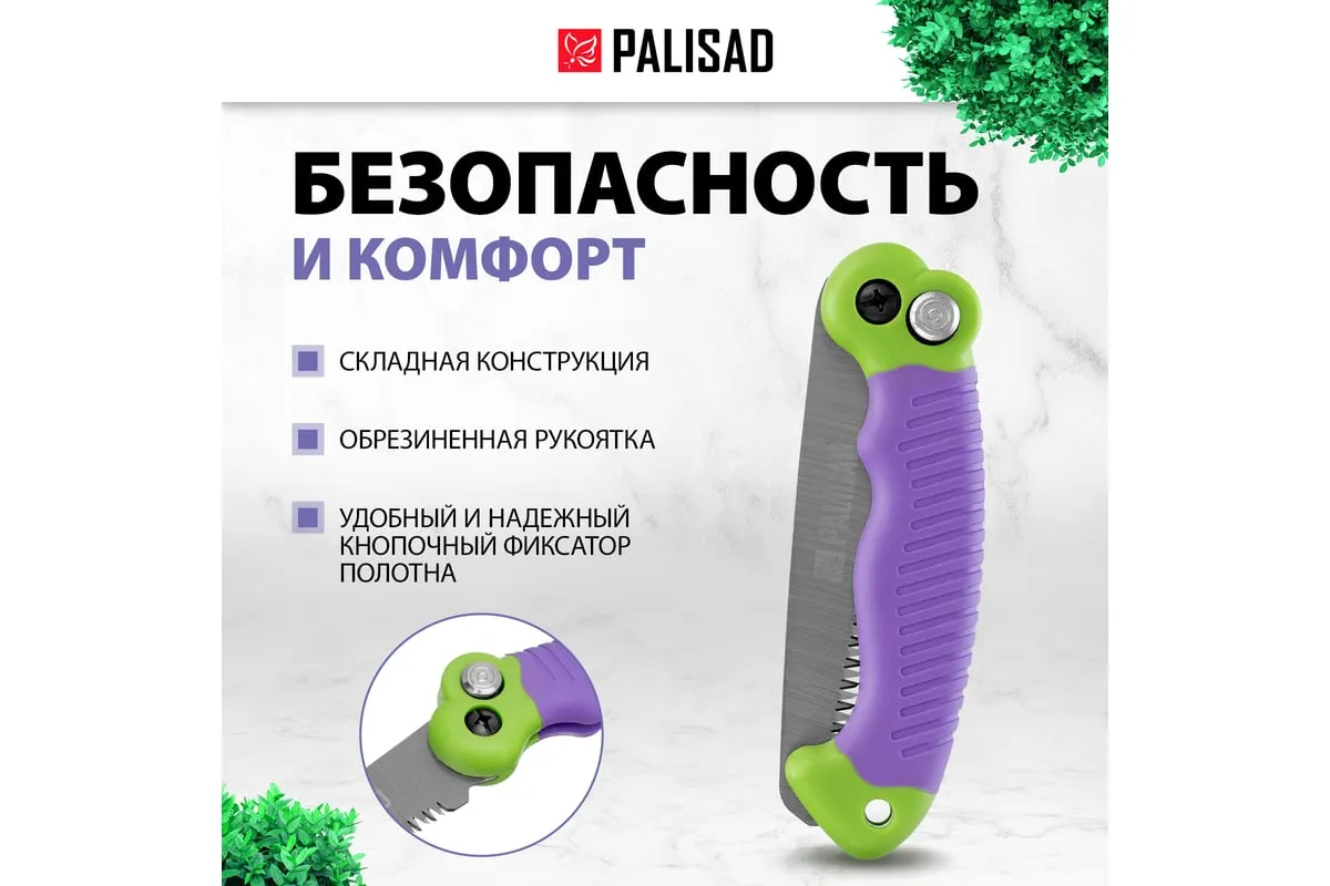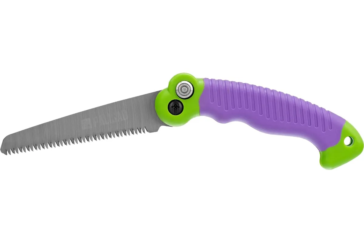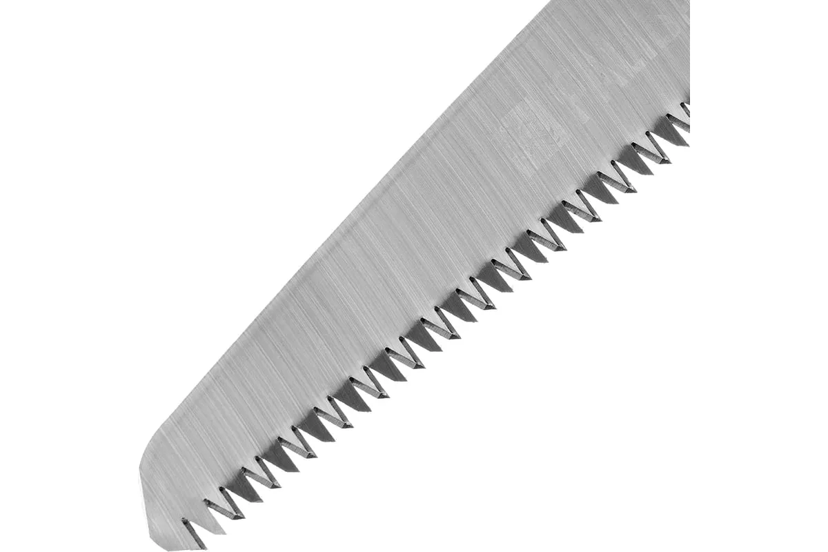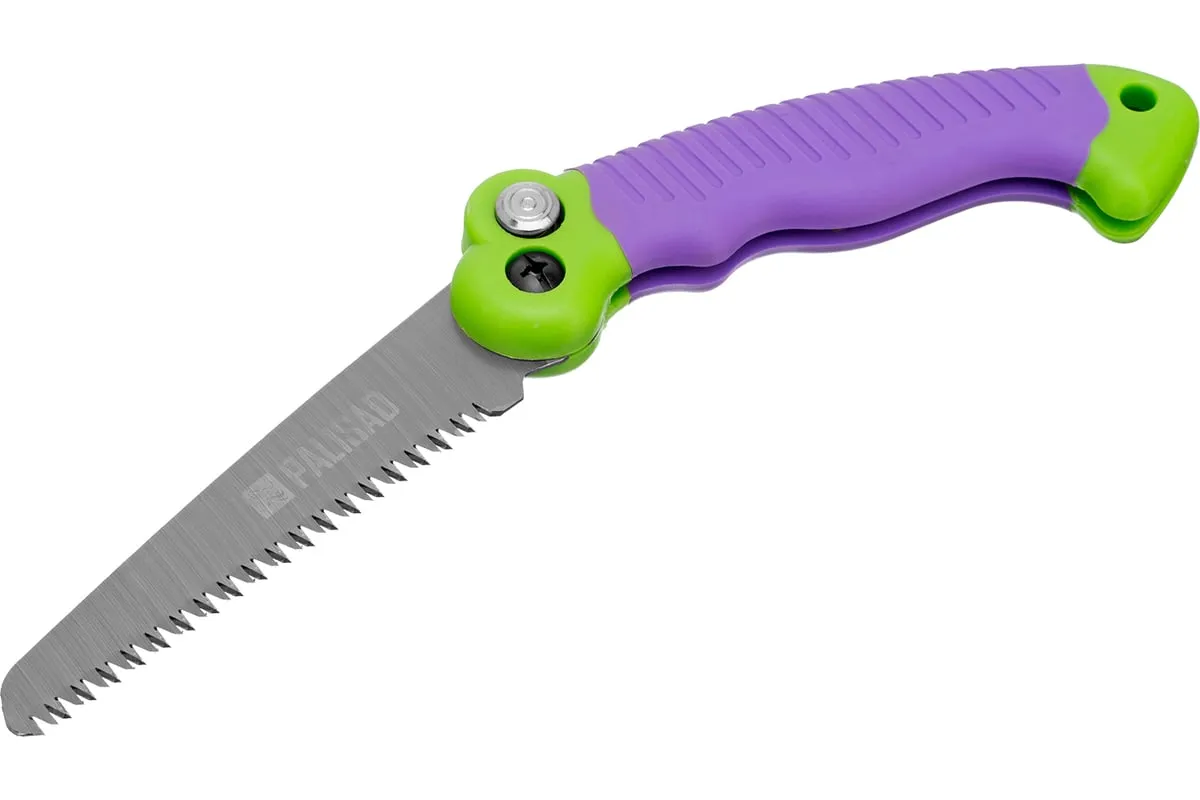 Садовая складная пила Palisad 60415 с рабочей частью длиной 115 мм и пластиковой обрезиненной рукояткой — удобный и компактный инструмент, который будет полезен не только в саду или на строительной площадке, но и в походе. Позволяет обрезать ветки деревьев, выполнять продольный и поперечный рез сухой или сырой древесины. Зубья с трехгранной заточкой обеспечивают эффективную работу при минимальных усилиях со стороны пользователя.