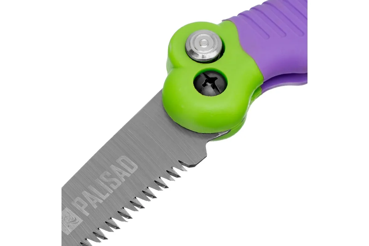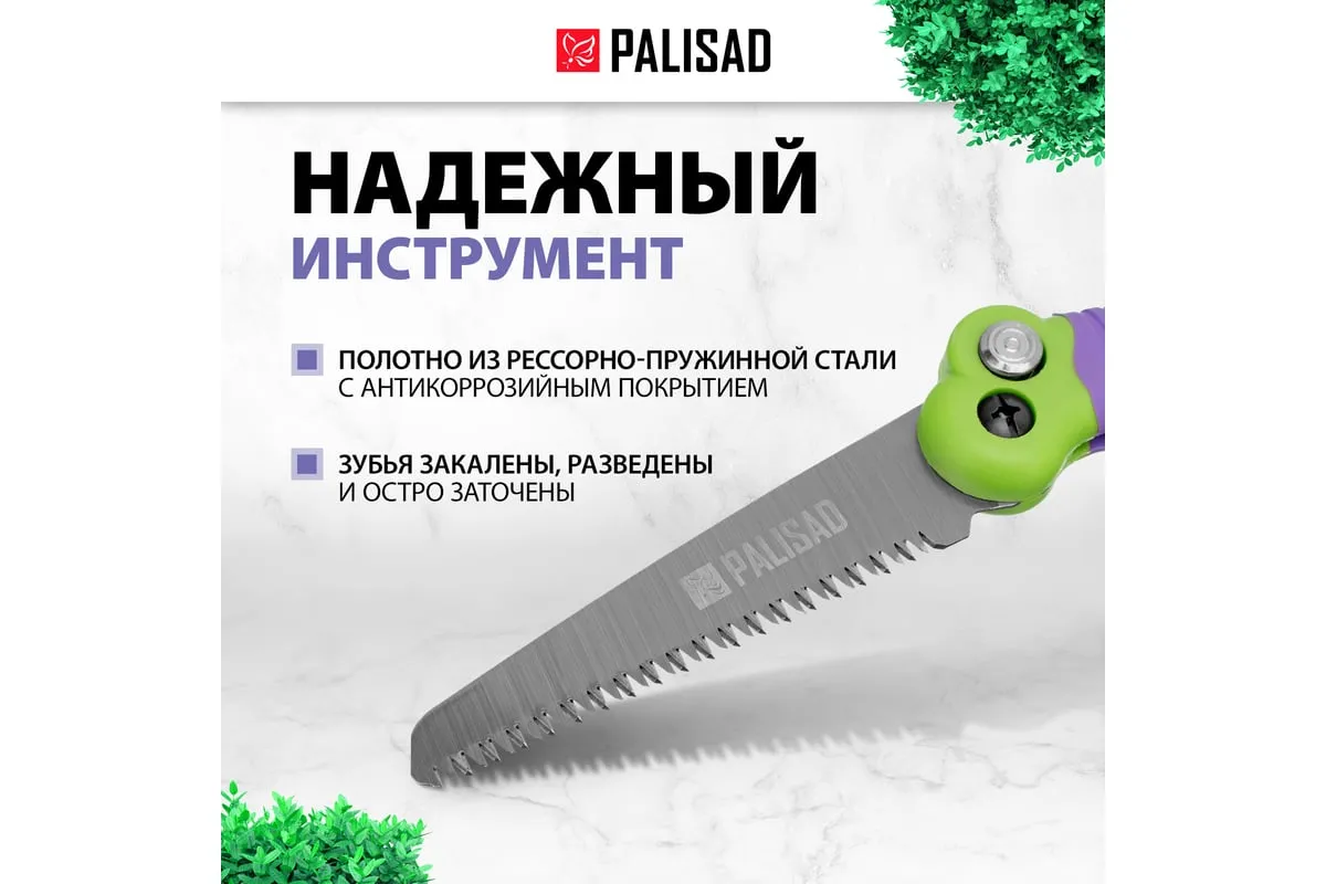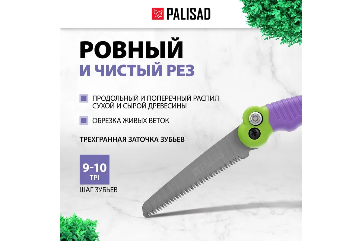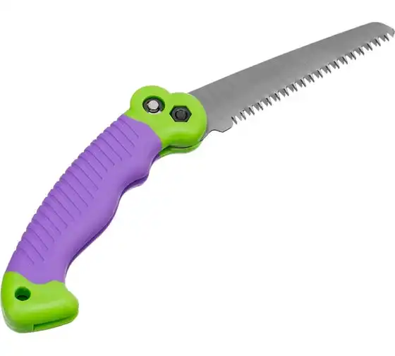 Садовая складная пила Palisad 60415 с рабочей частью длиной 115 мм и пластиковой обрезиненной рукояткой — удобный и компактный инструмент, который будет полезен не только в саду или на строительной площадке, но и в походе. Позволяет обрезать ветки деревьев, выполнять продольный и поперечный рез сухой или сырой древесины. Зубья с трехгранной заточкой обеспечивают эффективную работу при минимальных усилиях со стороны пользователя.