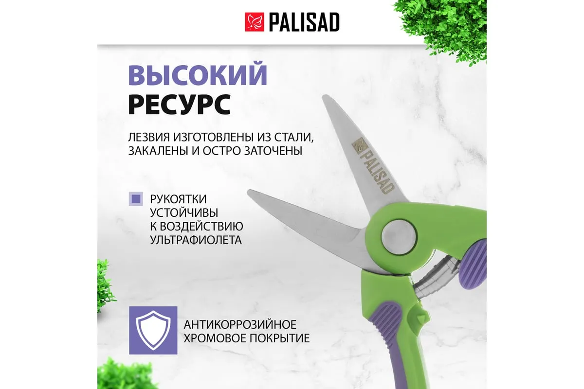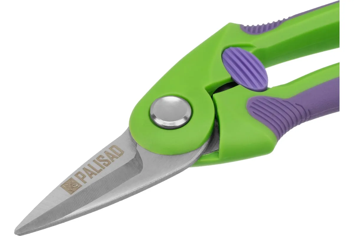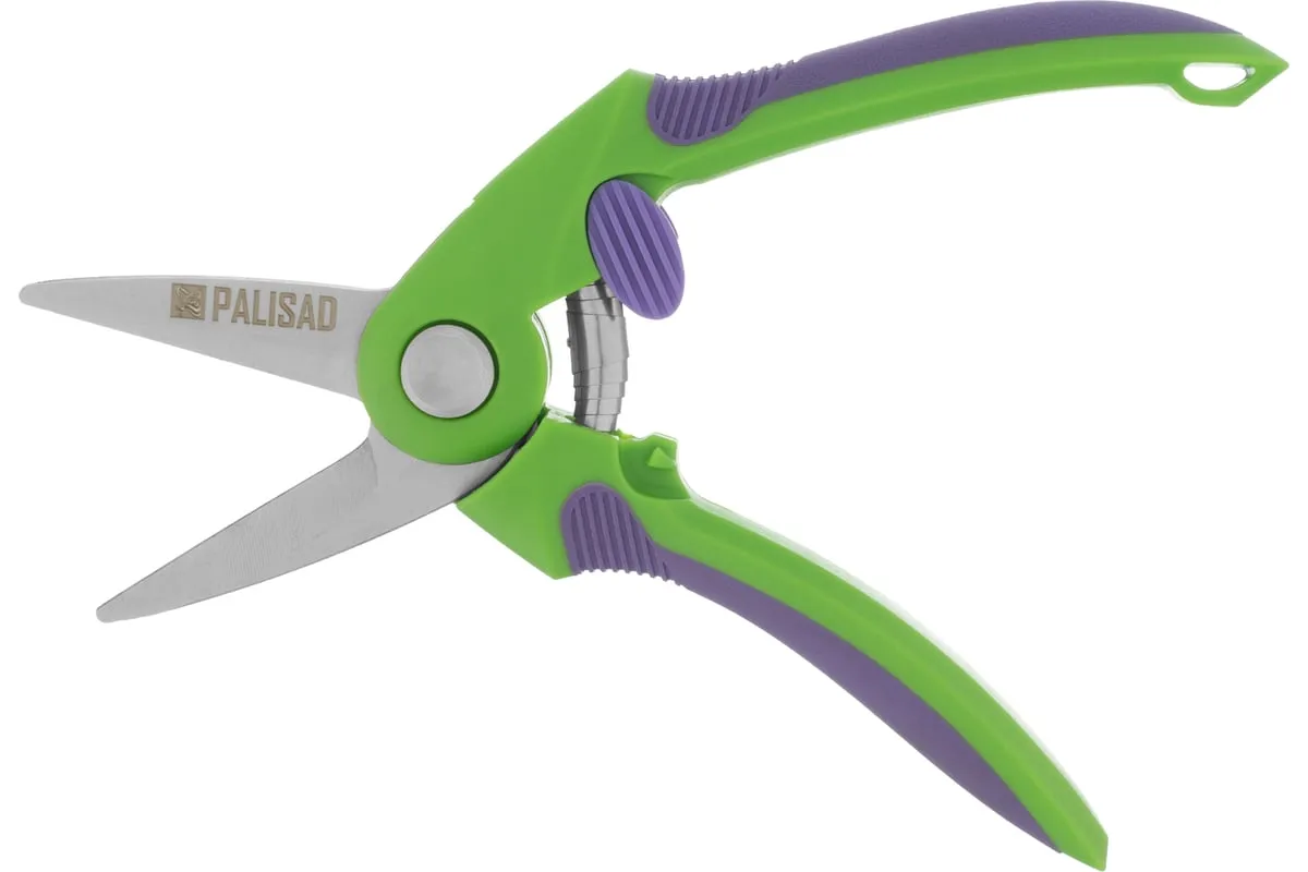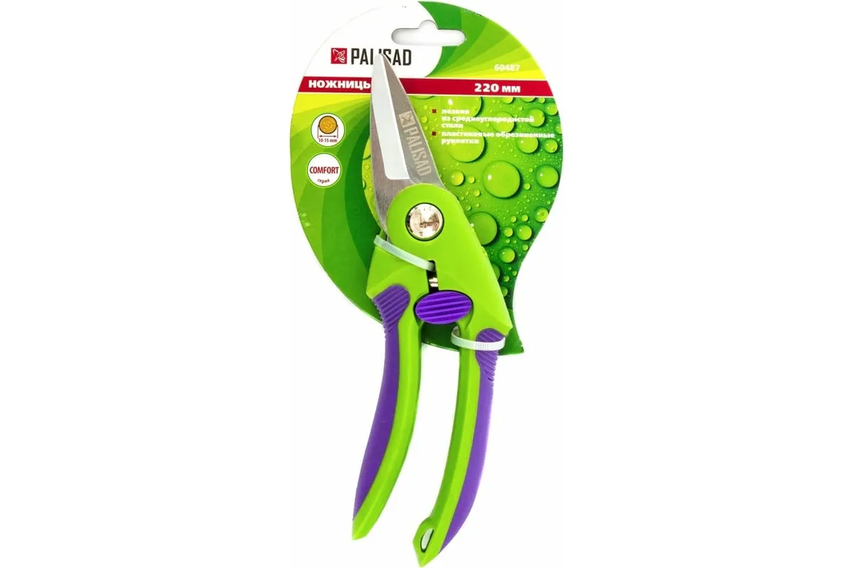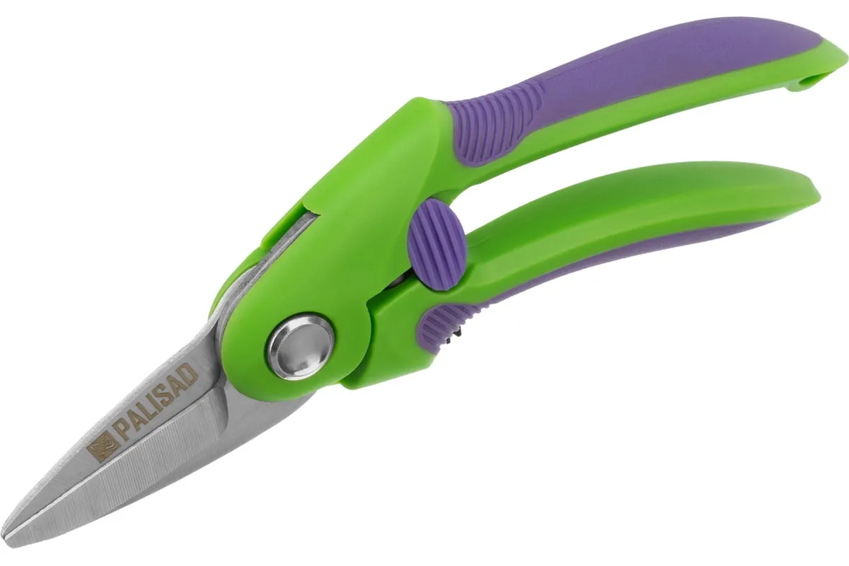 Садовые ножницы PALISAD 60487 могут использоваться для обрезки мелких кустарников, цветов, создания бонсай и топиарных фигур. Также с их помощью можно резать бумагу, картон, ткань и подвязочный материал. Максимальный диаметр реза - 10 мм. Закаленные лезвия имеютпродолжительный срок службы. Удобный замок надежно фиксирует их в закрытом состоянии -для дополнительной безопасности. Пластиковые рукоятки обеспечивают удобный хват и имеют малый вес,что способствует неутомительной работе.