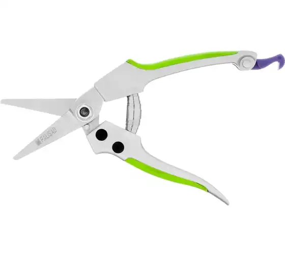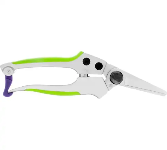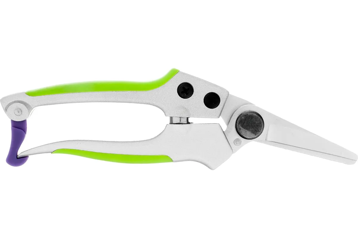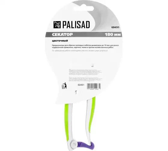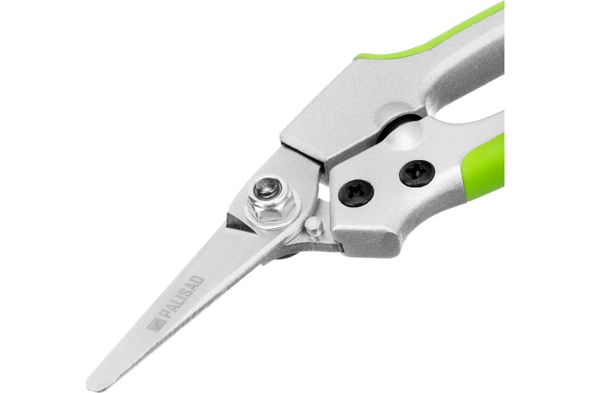 Садовые ножницы PALISAD 60491 применяются для обрезки мелких кустарников и растений, создания бонсай и топиарных фигур, а также прочих хозяйственных работ. Диаметр реза - 10 мм. Закаленные лезвия позволяют резать картон, бумагу и ткани. Удобный замок фиксирует лезвия в закрытом состоянии, чтообеспечивает дополнительную безопасность. Алюминиевые обрезиненные рукоятки удобно лежат в руке.