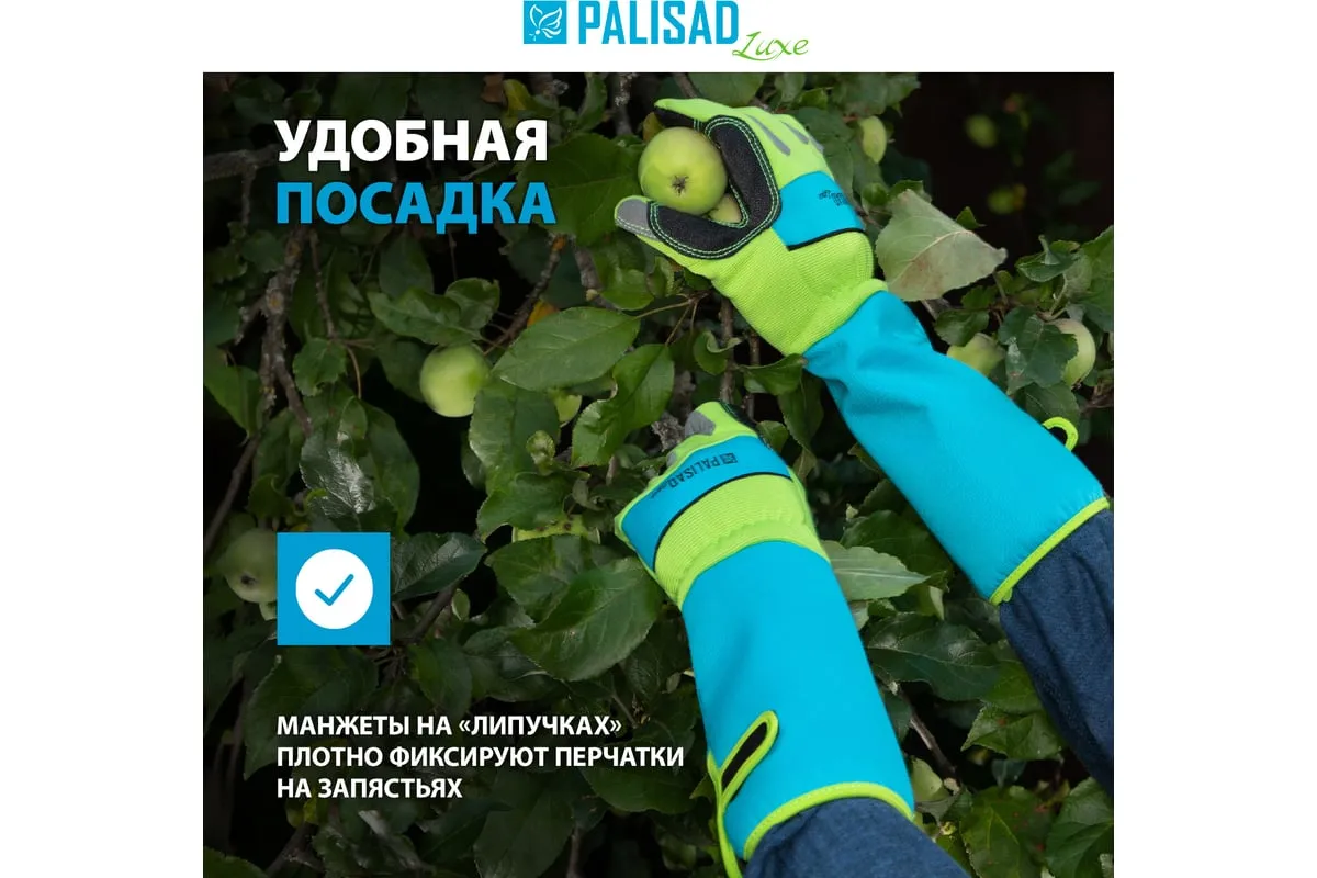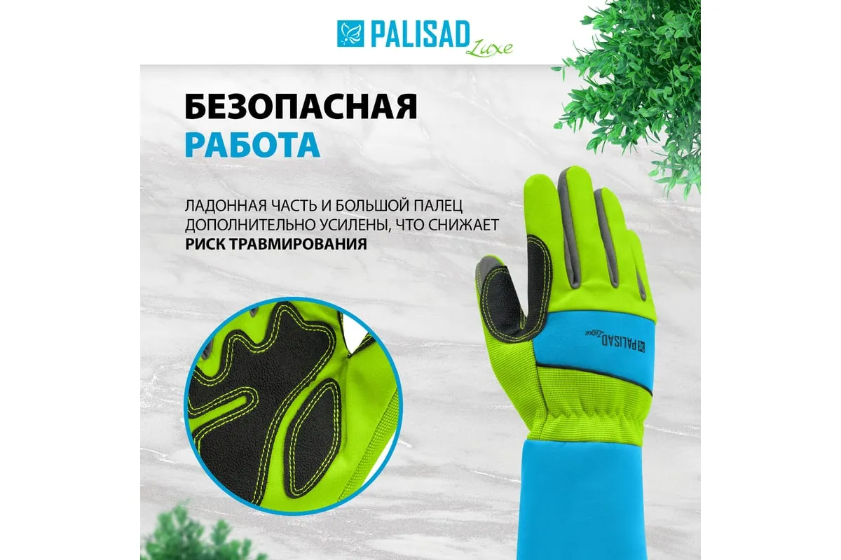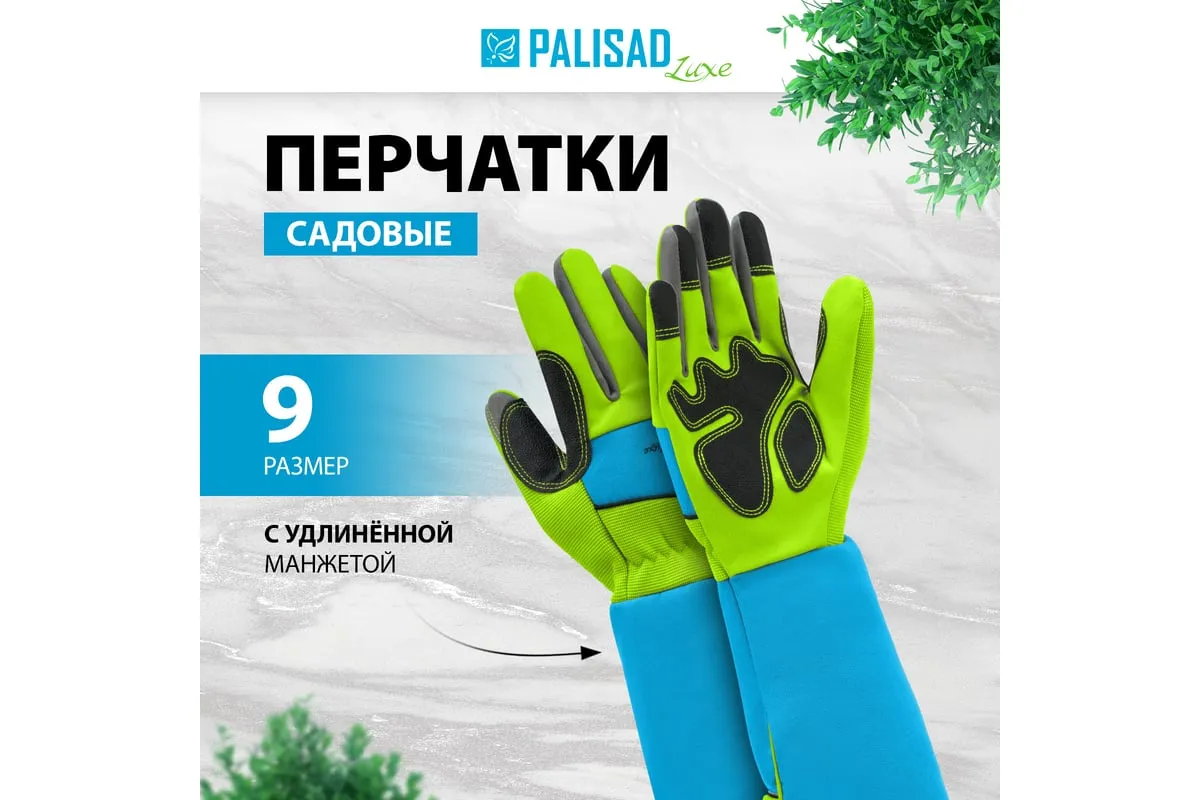 Садовые перчатки Palisad Luxe 67983 размера 9, с удлиненной манжетой, пригодятся во время ухода за растениями на дачном участке. Отличаются повышенной устойчивостью к проколам, поэтому надежно защищают кожу рук от механических повреждений.