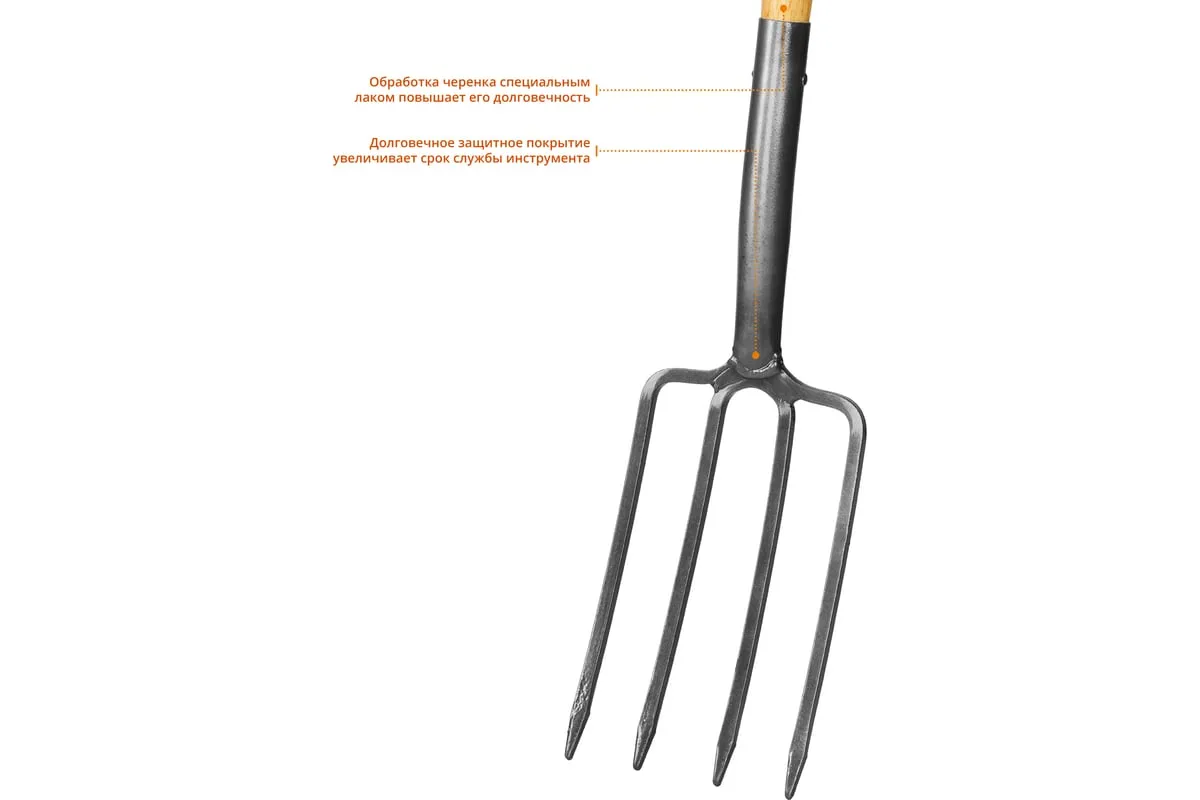 Садовые вилы Grinda 39727 используются на садовых участках для уборочных работ. Особо прочная рабочая часть имеет специальное покрытие, которое защищает инструмент от коррозии. Благодаря этому данная модель имеет долгий срок службы.