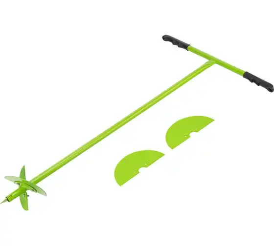 Бур лопастной Сибртех 64448, 1000 мм, со сменными ножами диаметром 150 мм и 200 мм, предназначен для садовых и строительных работ на приусадебном участке. Он применяется для бурения отверстий под опоры ограждений, столбов, скамеек, беседок и других конструкций, создания углублений и лунок для посадки растений или внесения удобрений.