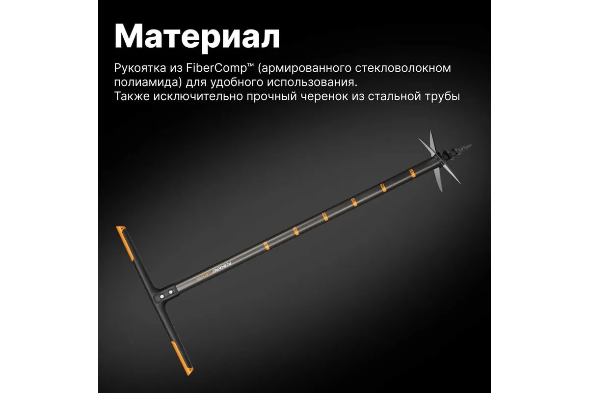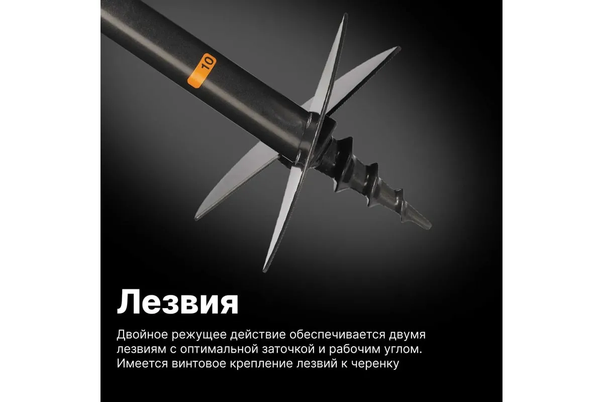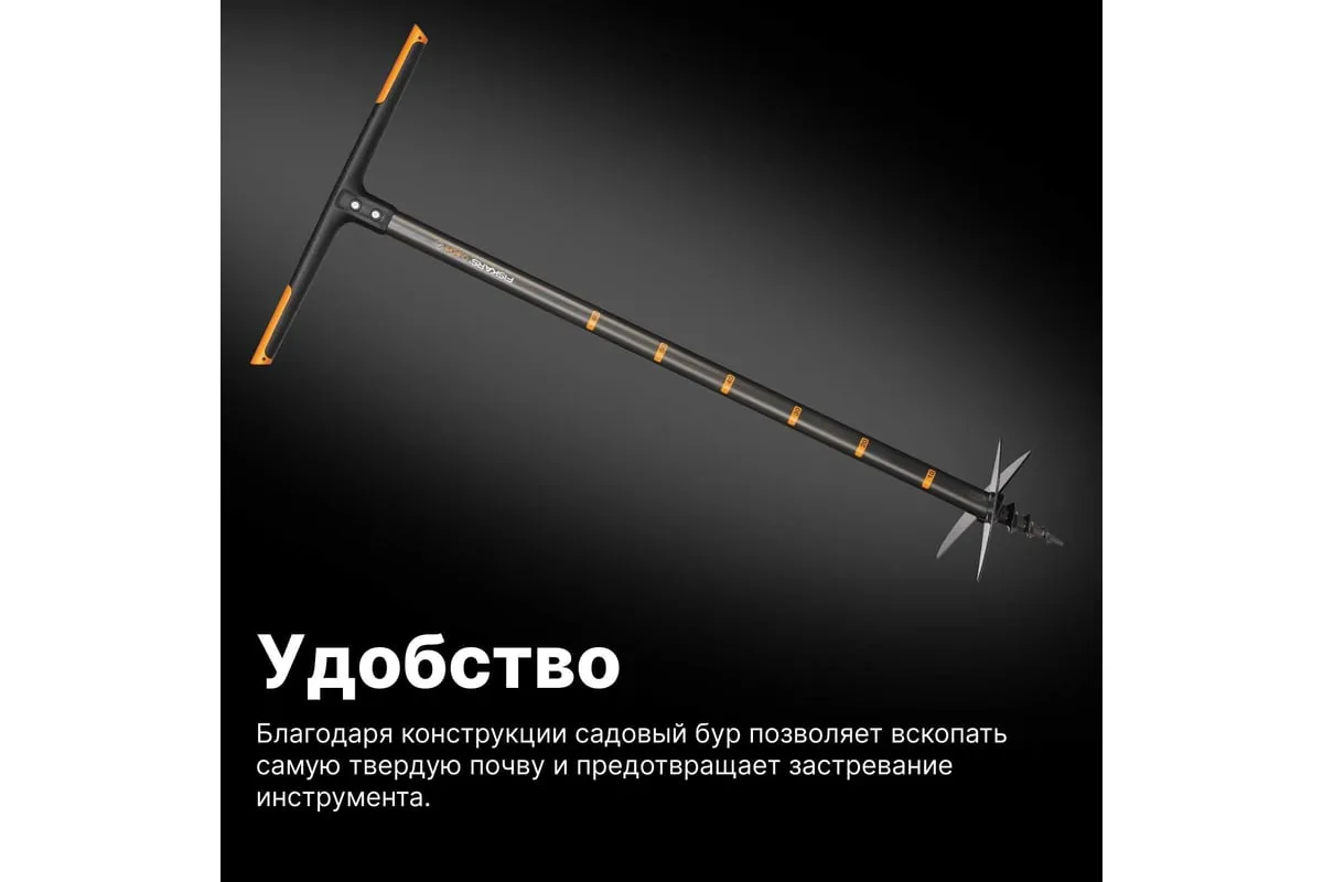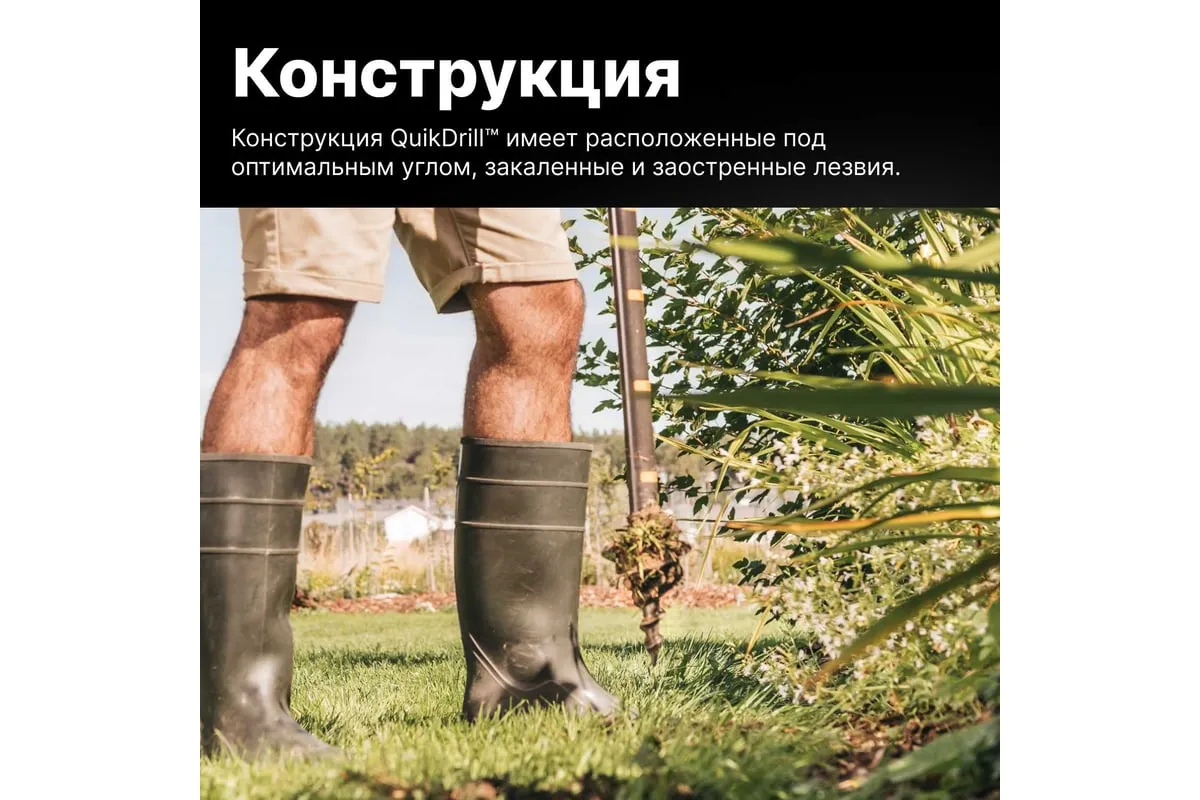 Садовый бур Fiskars QuikDrill 1000640 (134730) используется для бурения скважин. Ножи особого профиля имеют заточенную режущую кромку, что позволяет бурить почву без особых усилий. Два лезвия с оптимальной заточкой обеспечивают двойное режущее действие. Бур покрашен глянцевой порошковой краской, что делает его устойчивым к царапинам. Винтовое крепление лезвий к черенку позволяет быстро и легко производить замену лезвий.