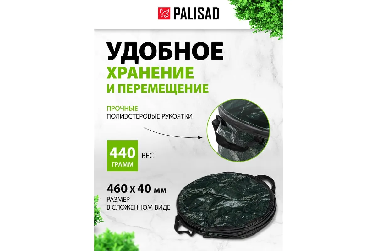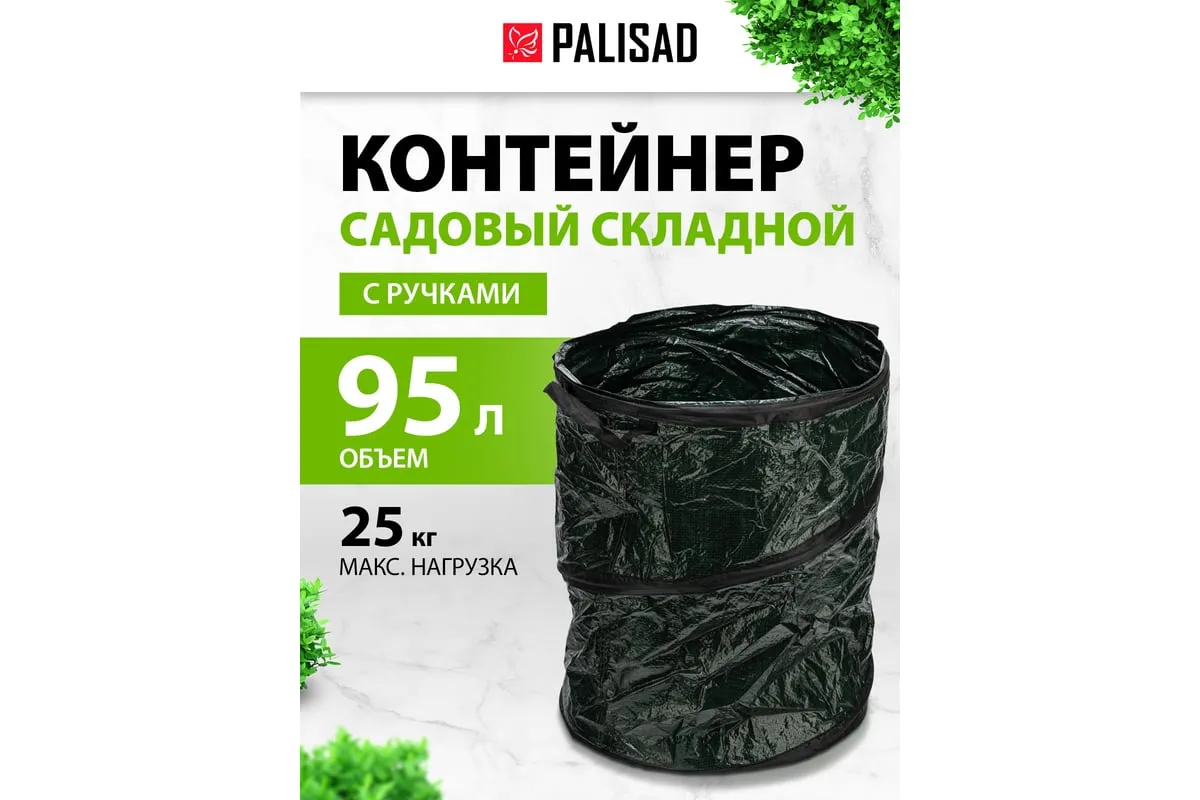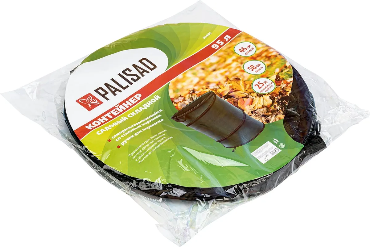 Садовый контейнер 95 л PALISAD 64495 предназначен для сбора и компостирования садового мусора. Емкость выполнена из полиэфирной ткани и оснащена двумя ручками для транспортировки. Благодаря складной конструкции, контейнер не занимает много места при хранении. Диаметр контейнера 450 мм. Высота в рабочем положении 560 мм. Высота в сложенном положении 40 мм.