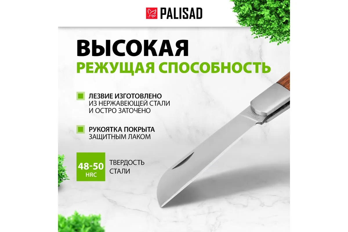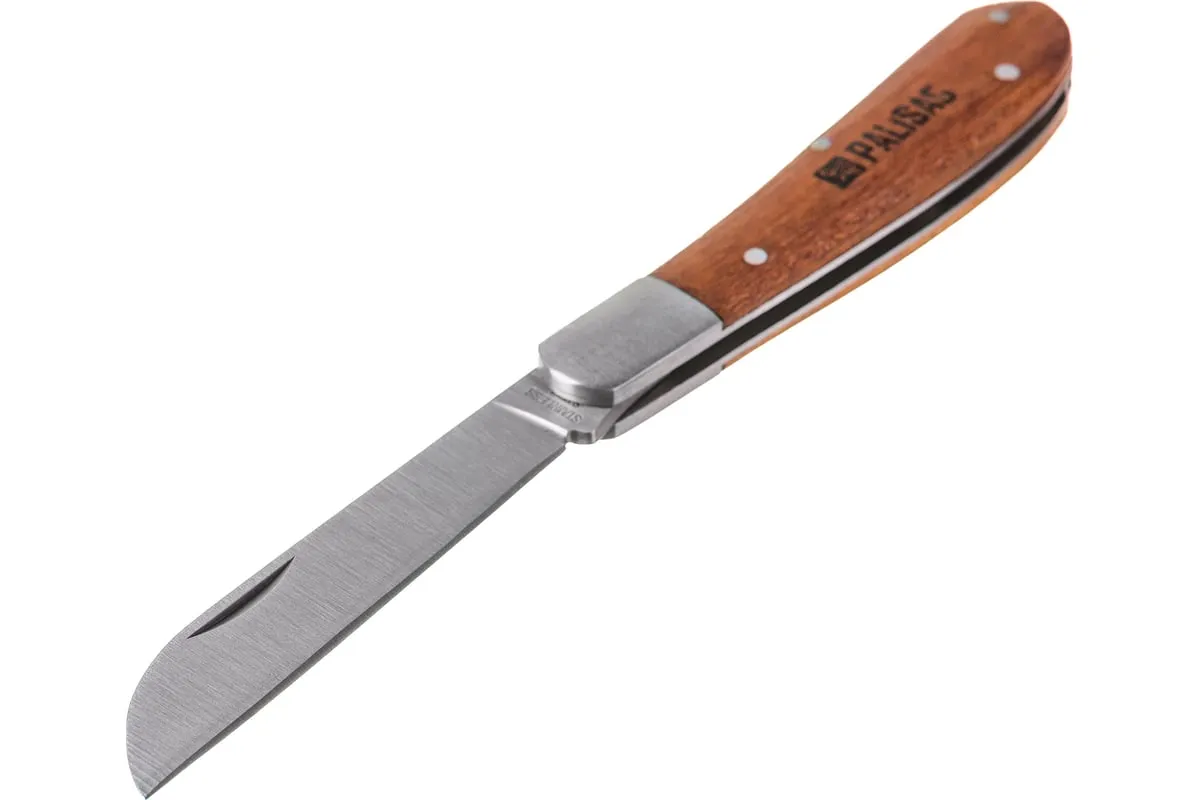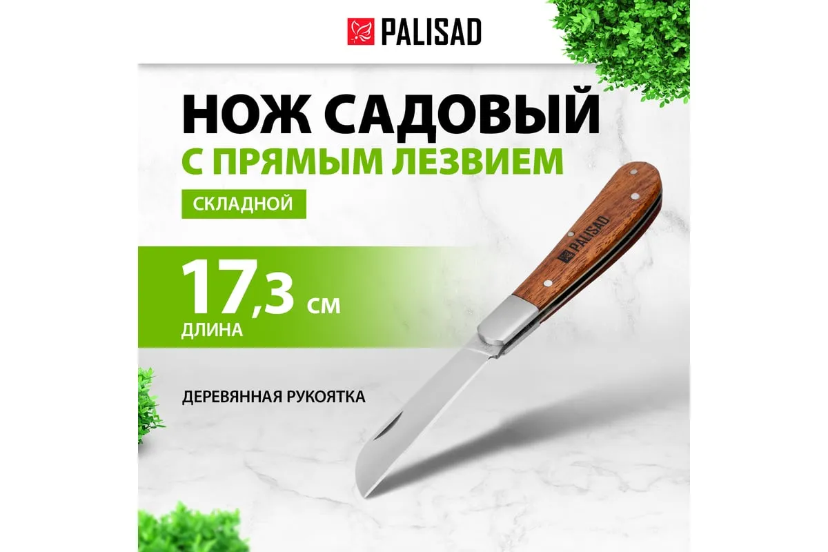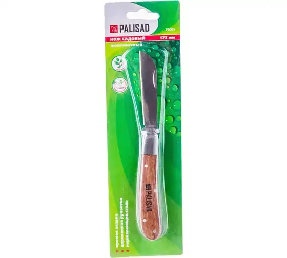 Садовый складной нож Palisad 79003 длиной 173 мм, с прямым лезвием и деревянной рукояткой будет полезен садоводам для удаления сучьев, нарезки черенков, срезки шипов, зачистки срезов и т.д. За счет складной конструкции его можно удобно и безопасно транспортировать и хранить. Во избежание преждевременного затупления лезвия рекомендуется протирать его салфеткой и смазывать маслом после каждого применения.