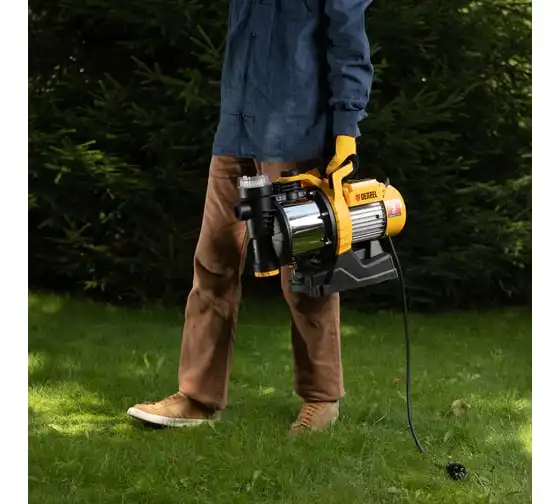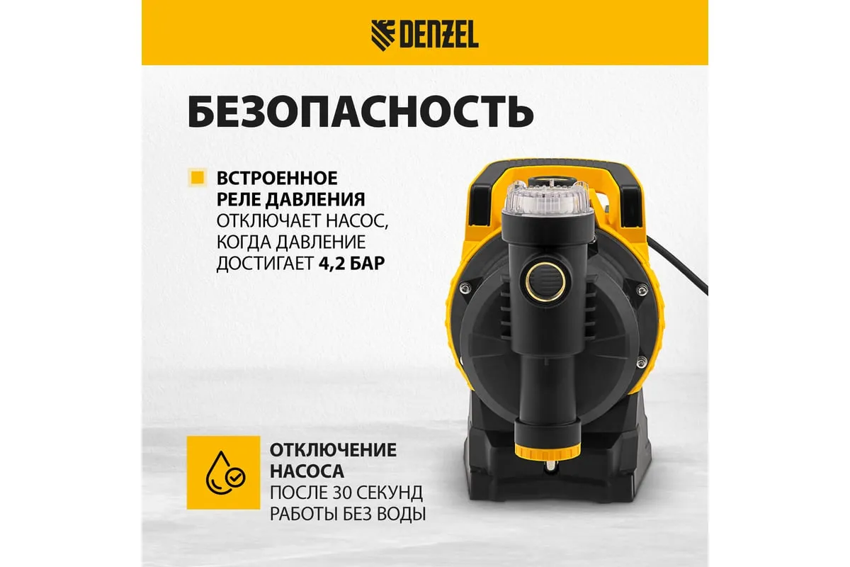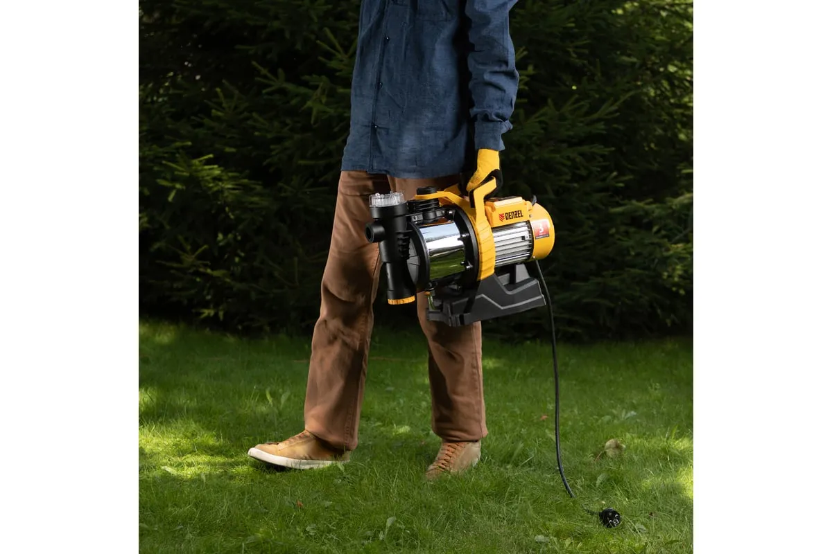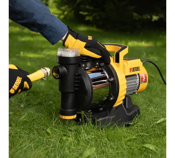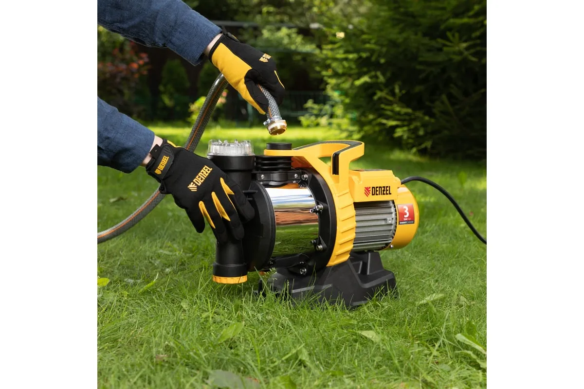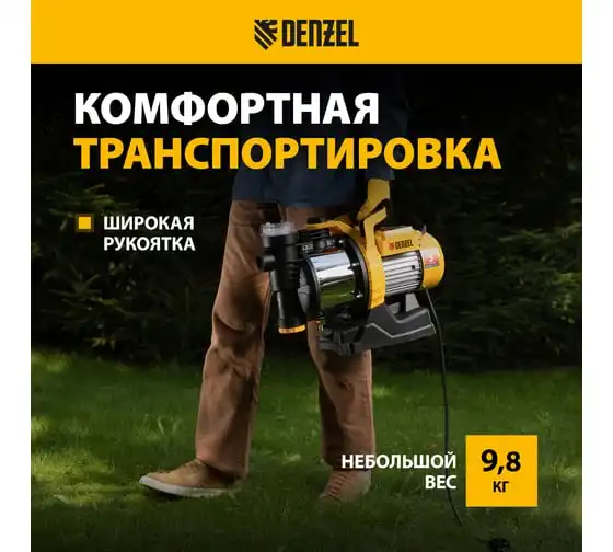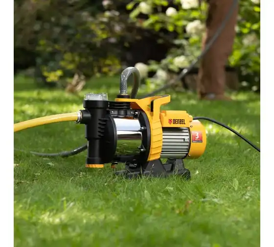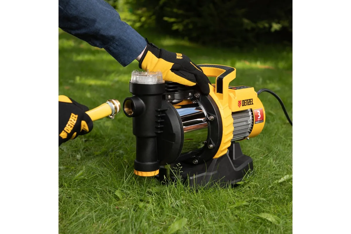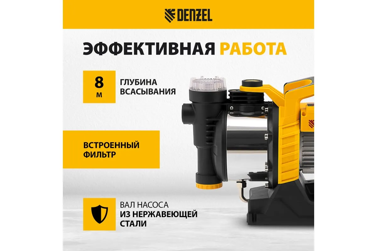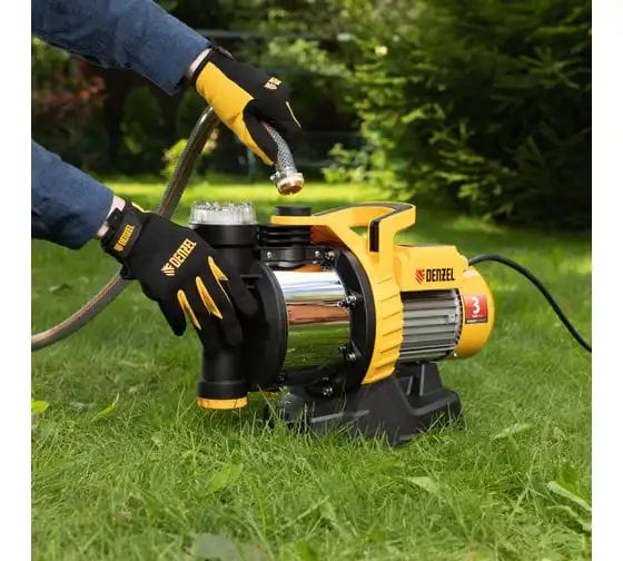 Садовый поверхностный насос Denzel GP1100SS 97305 используется для забора чистой воды из колодцев, емкостей и водоемов, а также для организации системы полива и водоснабжения на даче.