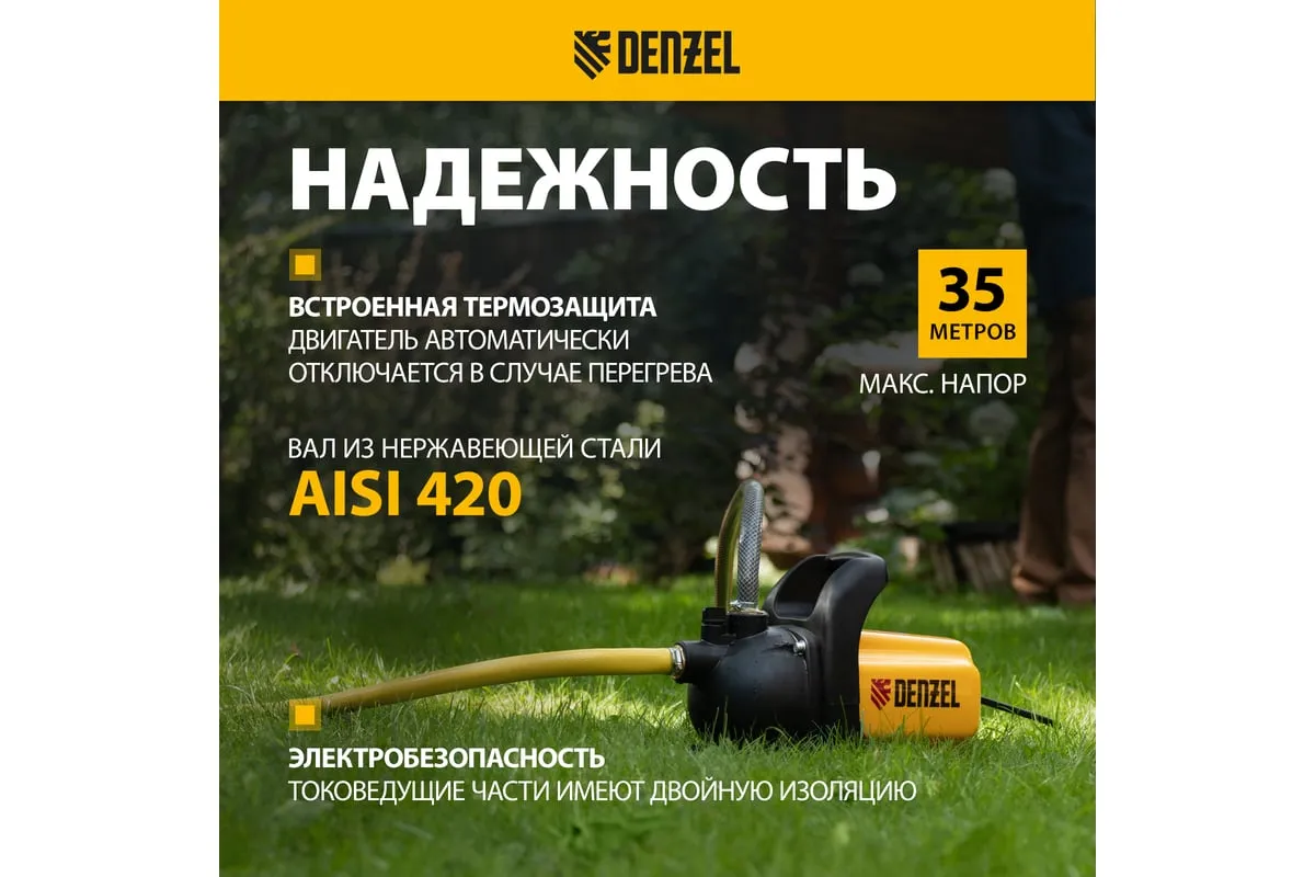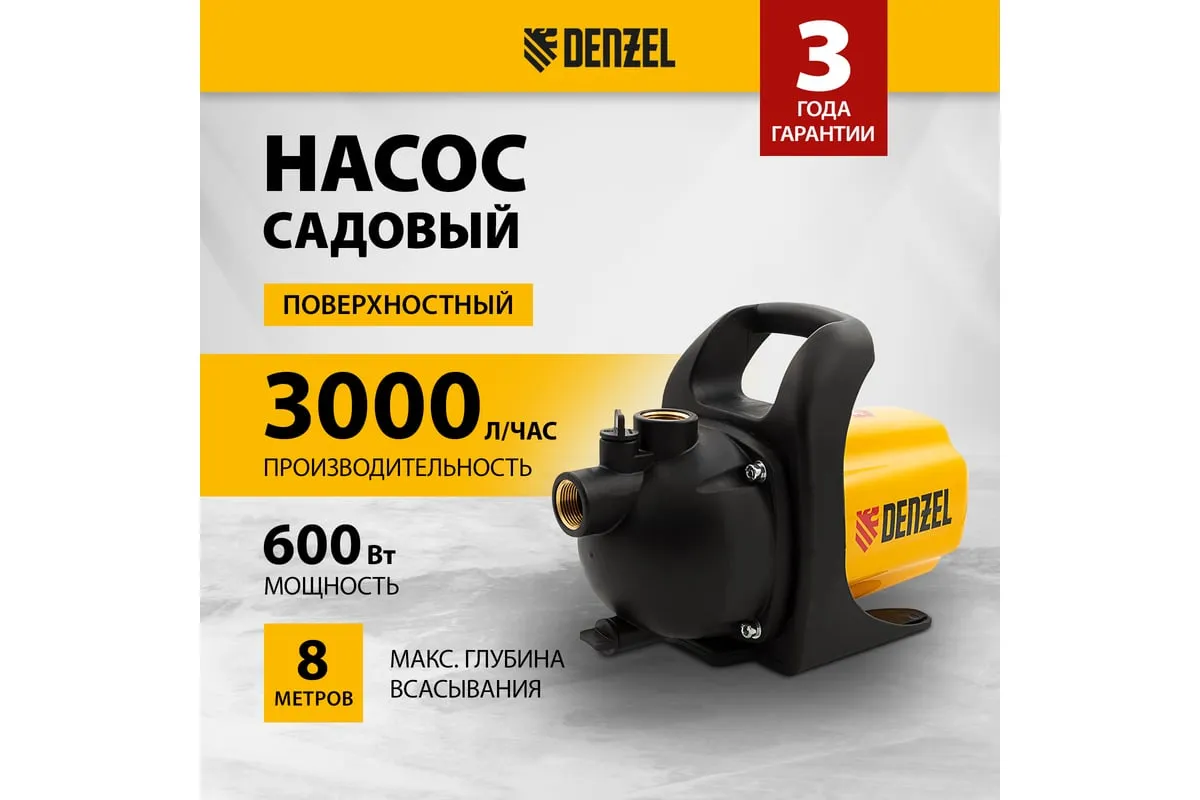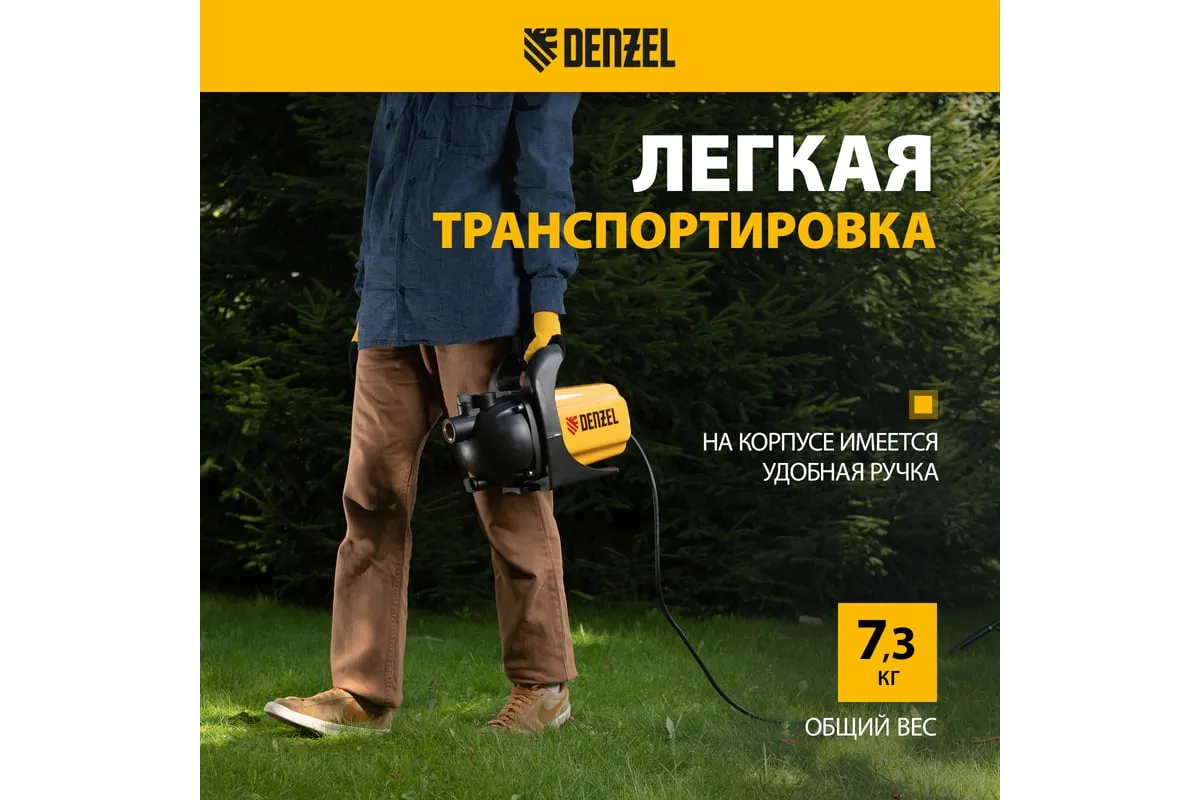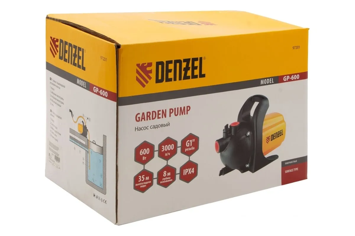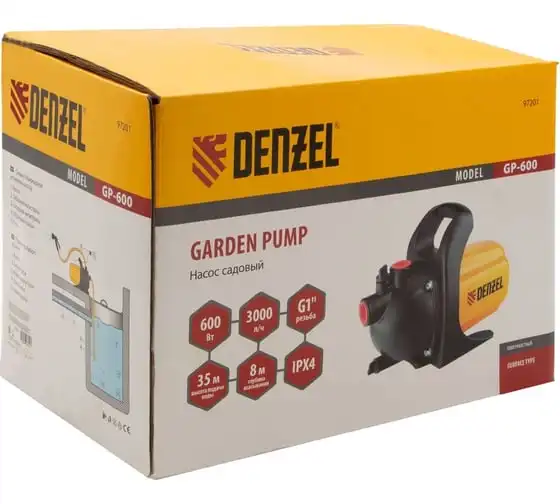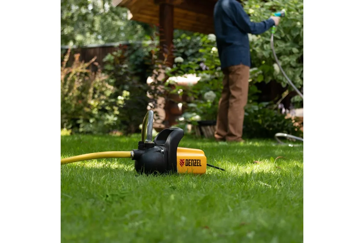Садовый поверхностный насос Denzel GP600 97201 используется в саду и на даче для организации водоснабжения домов.